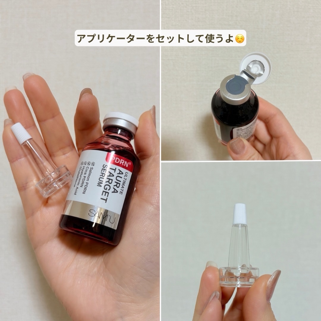 【使った商品】SAM'UPDRNアルティメットオーラターゲットセラム【cherryred(チェリーレッド)】【商品の特徴】肌本来の輝きを引き出すヒアルロン酸キューブにサーモン由来のPDRN”を配合、肌の土台からしっかりケア【肌質】くすみカサつ...