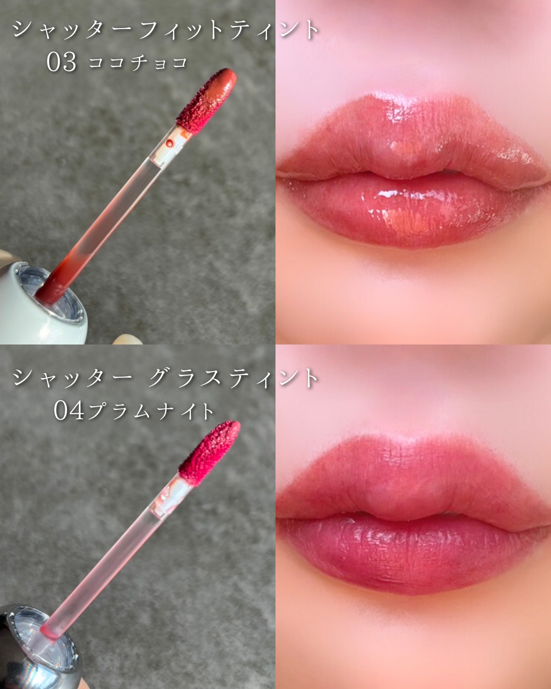 ..moletteのリップが超優秀🥹💗今日はシャッターフィットティントとシャッターグラスティントのお話📕🫧シャッターフィットティントはエアリーで軽やかなテクスチャーと、長時間密着する持続力が特長のウォーターブラータイプ💋私が選んだ02Rain...
