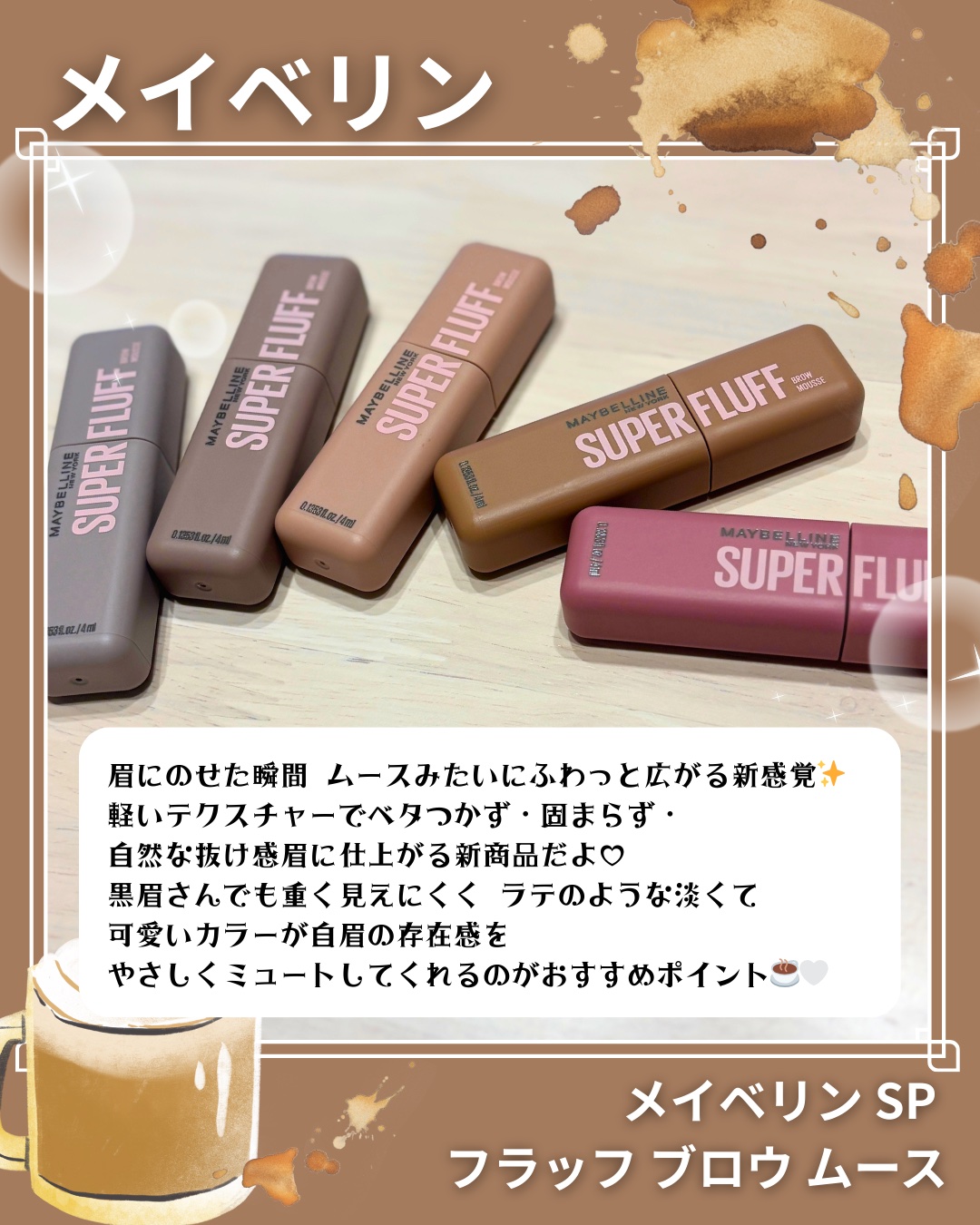 \ふわっと抜け感/メイベリンSPフラッフブロウムース2026年1月19日発売🪄⊹これムースみたいな軽さで、 空気とパウダーを混ぜたようなエアリームーステクスチャー💭ベタついたりパリパリした感じにならなくて、ほわっとふんわり柔らかな眉に🤍カラー...