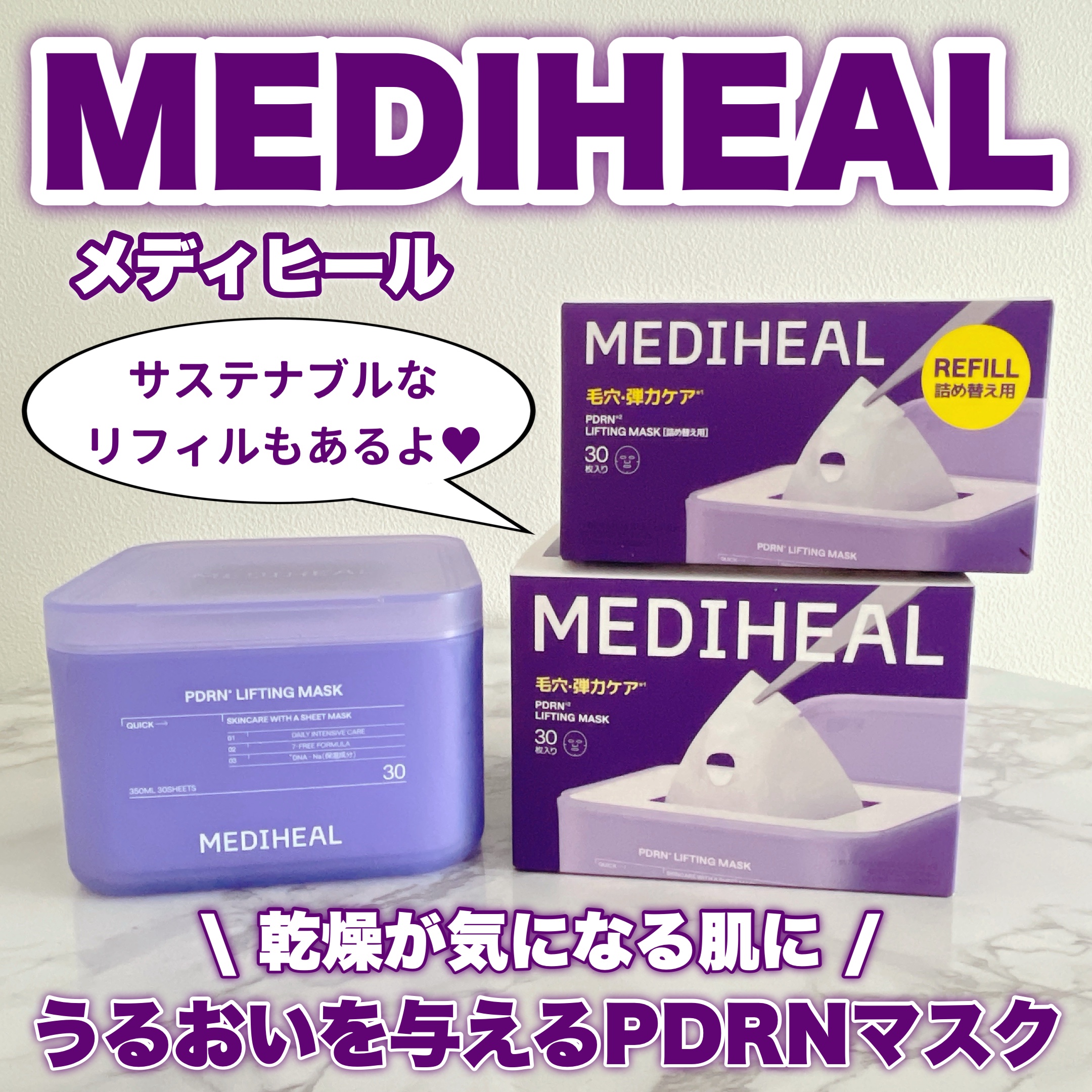 #PR話題のMEDIHEAL人気マスク💟PDRNリフティングマスク[30枚マスク]1枚1枚、美容液がひたひたで密着感◎乾燥が特に気になる今の時期でも、毛穴までしっかり集中ケアできそうなのが嬉しい。30枚入り&リフィル対応で、コスパが良いし、環...