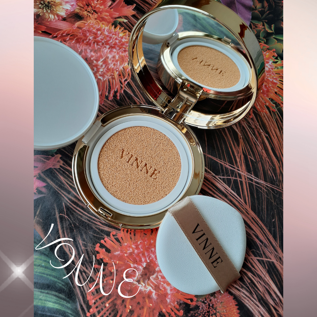 - 【72%スキンケアローズ・グロウフォーミュラ】 ダマスクローズウォーター*1を中心とした高濃度エッセンスが、肌に触れた瞬間みずみずしく浸透*2。スキンケア後のような潤って透明感のあるなめらかな肌へ導きます。 高い保湿と上質なツヤを同時に叶える、VINNE独自のプレミアム処方です。 【ダマスクローズ × 4種のスキンケア成分*1】 10,000ppmのダマスクローズウォーター*1が肌を穏やかに整え、 VINNE独自のクアトラコンプレックス*1が美容保湿成分をしっかり届けます。 さらに、エイジングケア*2に特化した“ゴールデンC*1”、第3世代ヒアルロン酸*1が水分バリアをサポート。 メイクしている間も、肌が整うスキンケアクッションです。 【独自技術 UHDカバー × リフレクティング光彩パウダー】 二重コーティングされたUHDカバーパウダーがムラづきを抑え、 薄膜でぴたりと密着。時間が経ってもメイクの仕上がりをキープするロングラスティング設計。 高反射の六角構造パウダーが光を立体的に反射し、 高いカバー力とリッチなツヤを兼ね備えた“水光肌”を演出します*4。 【微細グロウピグメントの繊細フィット】 粒子の細かいグロウピグメントが、肌が呼吸するように軽く密着。 本来の肌の質感を生かしながら、均一で洗練された輝きをプラスします。 シャイニングフィッティングフォーミュラ(Lumi-Coating System)により、 長時間上品な透明感*4が続くグロウベースを完成させます。 *1保湿成分 *2角質層まで *3年齢に応じたお手入れ *4メイクアップ効果による
