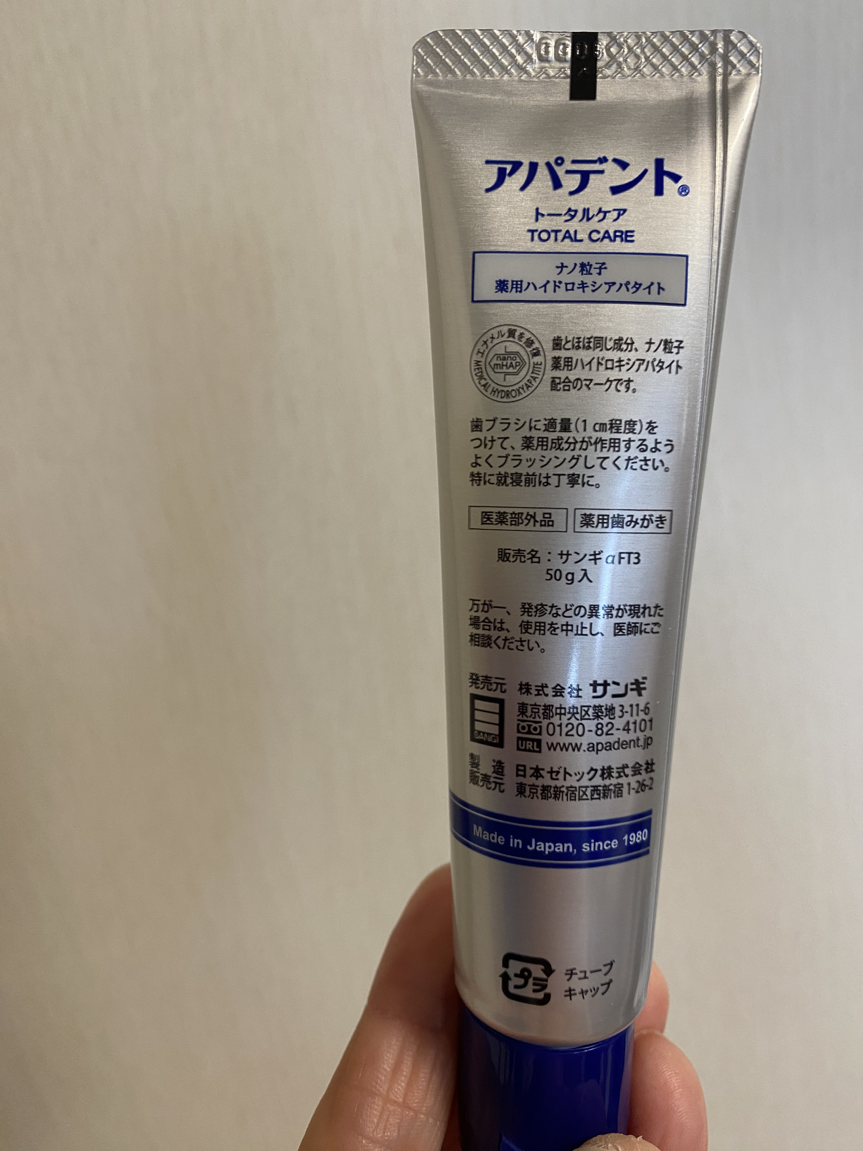 アパデントトータルケア50g(医薬部外品/薬用歯みがき 販売名:サンギαFT3)NASAのアイデアをヒントに生まれた世界初・エナメル質修復作用*によりむし歯を予防する歯みがき剤(歯の主成分を補給する薬用ハイドロキシアパタイト配合)マイルド...