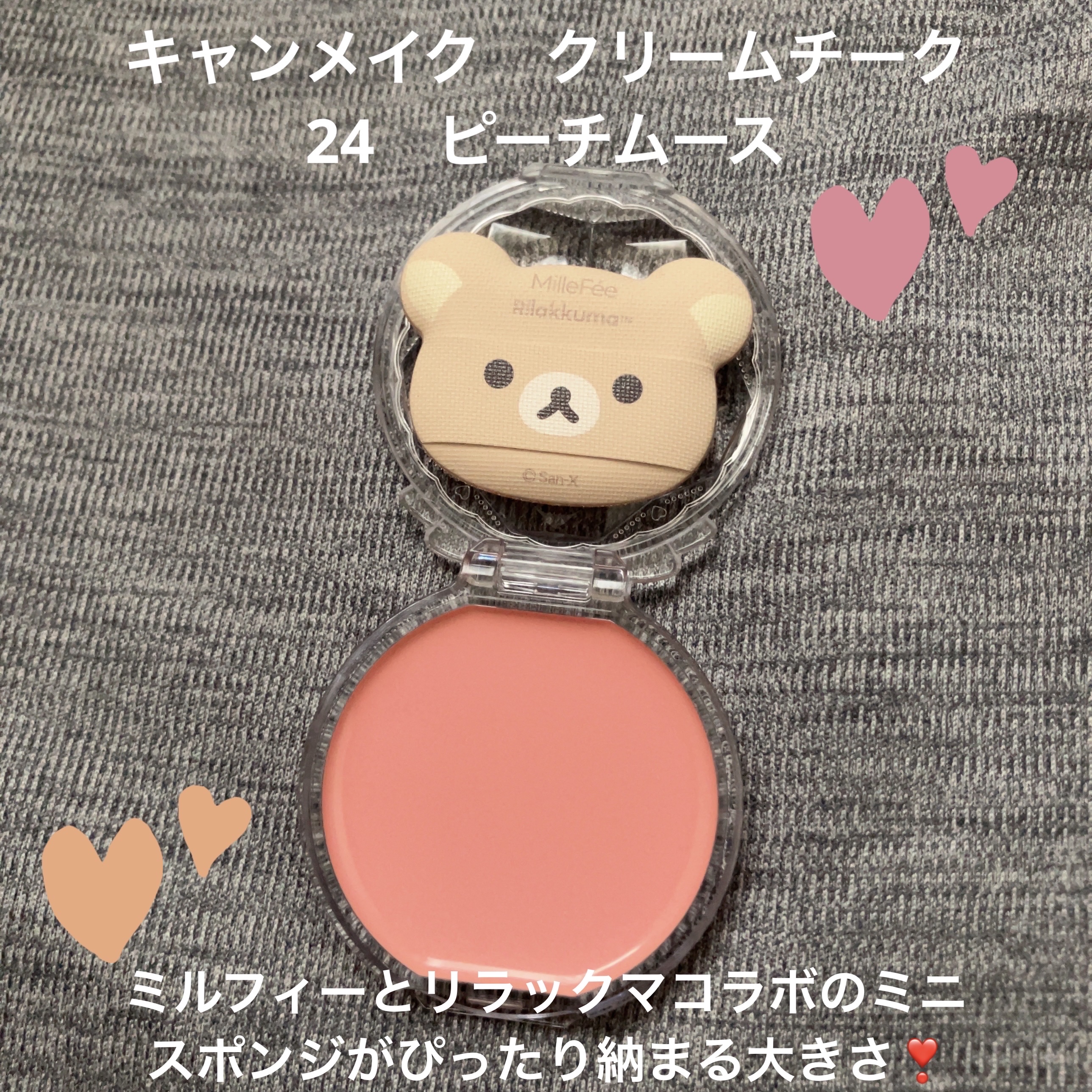 MimiBeautyのpost見て絶対買おうと思ってたキャンメイクのクリームチーク新色24番ピーチムース♡パケがクリスタルのお花みたいに見えて可愛い!色味は若干白みを含んだピーチピンク🍑この色めっっちゃ可愛い🥹これイエベ春爆盛れするやつだわ。...