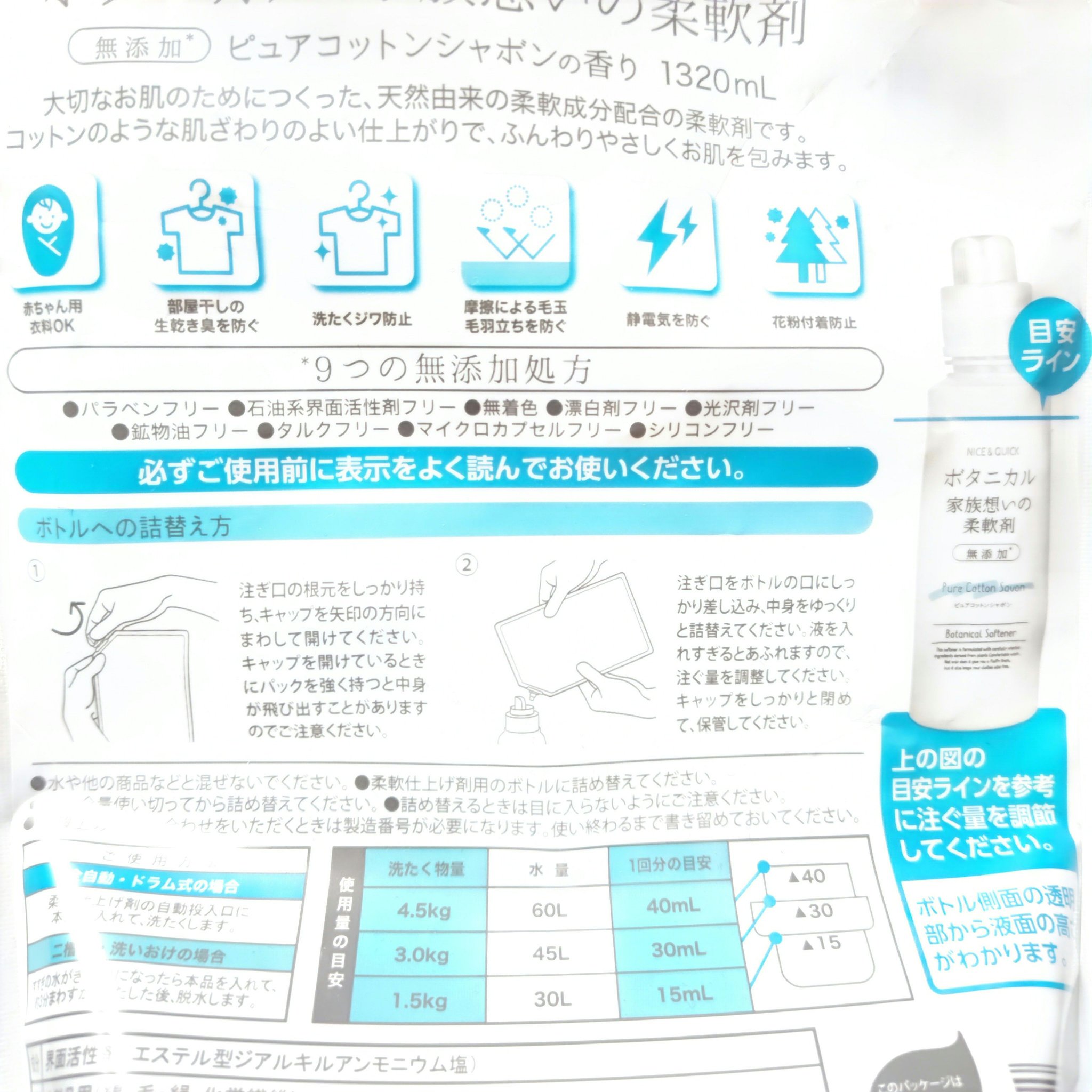 NICE & QUICK ボタニカル素肌想いの柔軟剤 ピュアコットン シャボンの香り | 712円 |