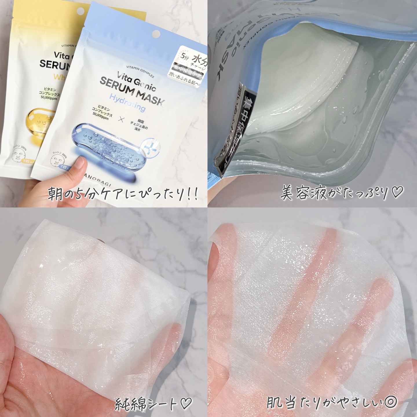 忙しい朝の肌、5分で整えるご褒美マスク☀️BANOBAGI(バノバギ)のビタジェニックセラムマスクホワイトニングとビタジェニックセラムマスクハイドレイティングは、どちらも“朝5分”にちょうどいいデイリーモーニングケア用シートマスク。ホワイトニ...