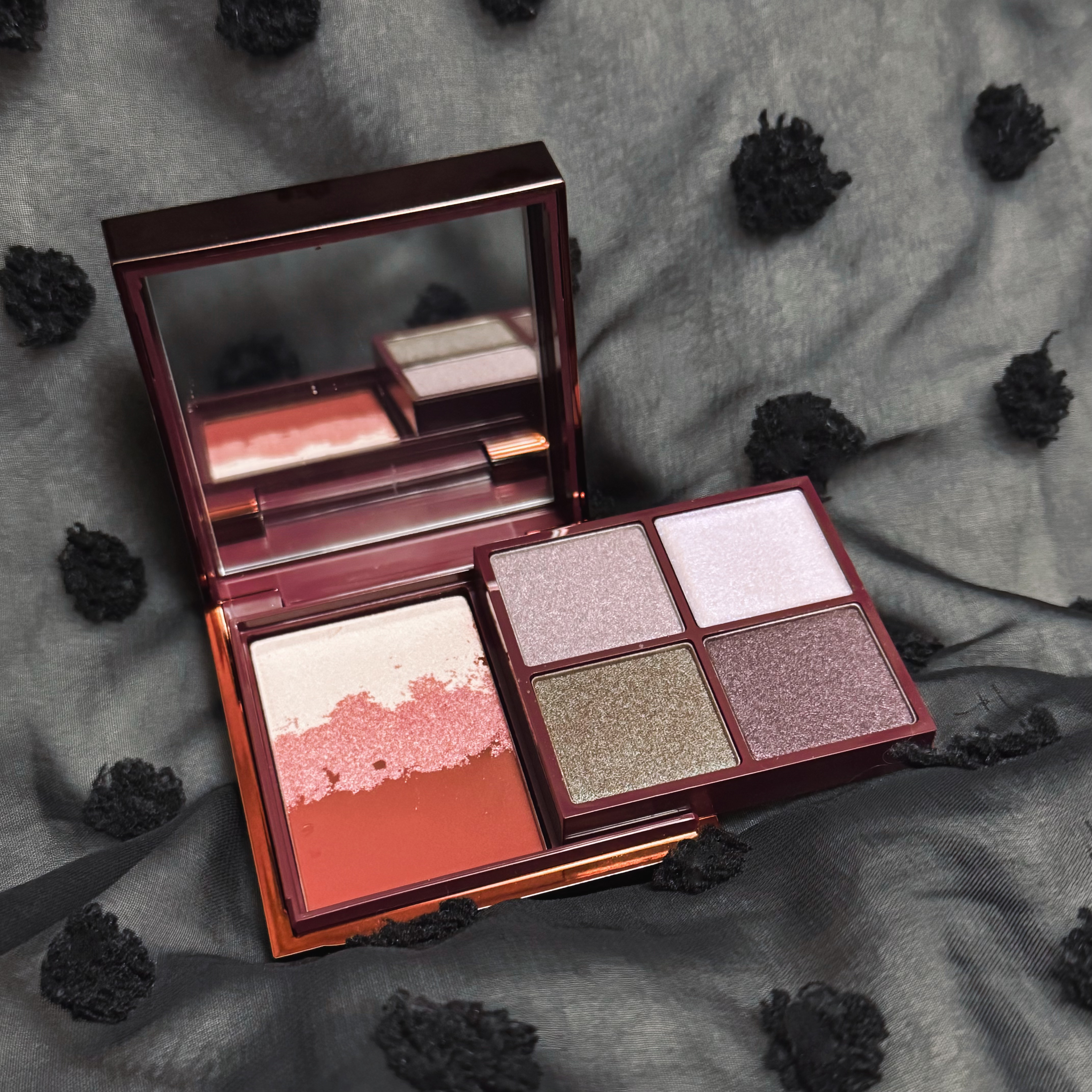 MACノクターナアイ+フェイスパレット🌃でアイメイクもチーク&ハイライトも全部仕上げました🥰✨なんっって綺麗なパレット😭✨深みのある絶妙カラーと、じゅわっとした赤みが可愛いフェイスカラー、青ラメのバームは偏光感があって目元の見え方のニュアンス...