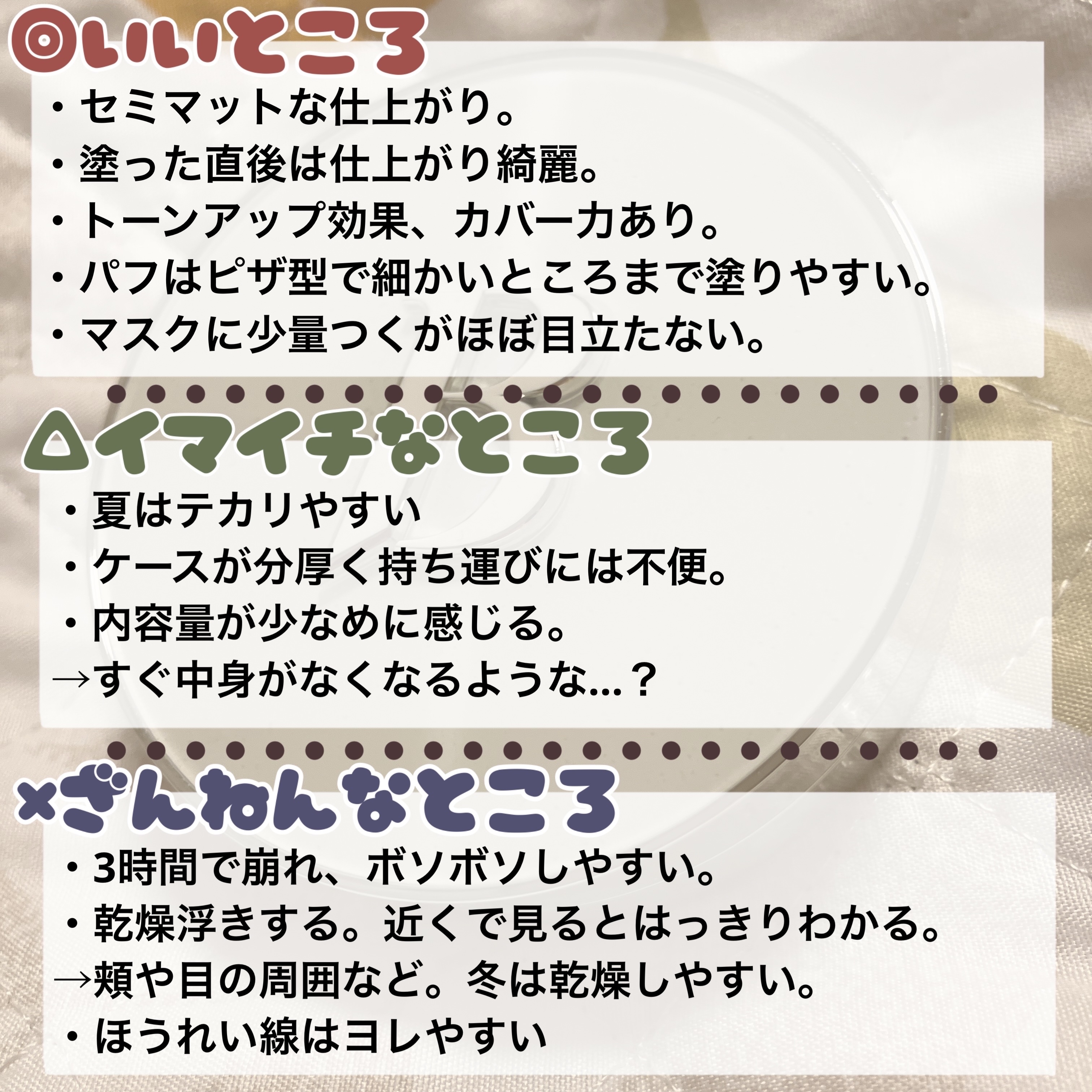 | ファンデーションランキング第3位 | 塗り心地といい、セミツヤ感 マスクしてても崩れがほぼ気にならない!! | 詳細を見る | |