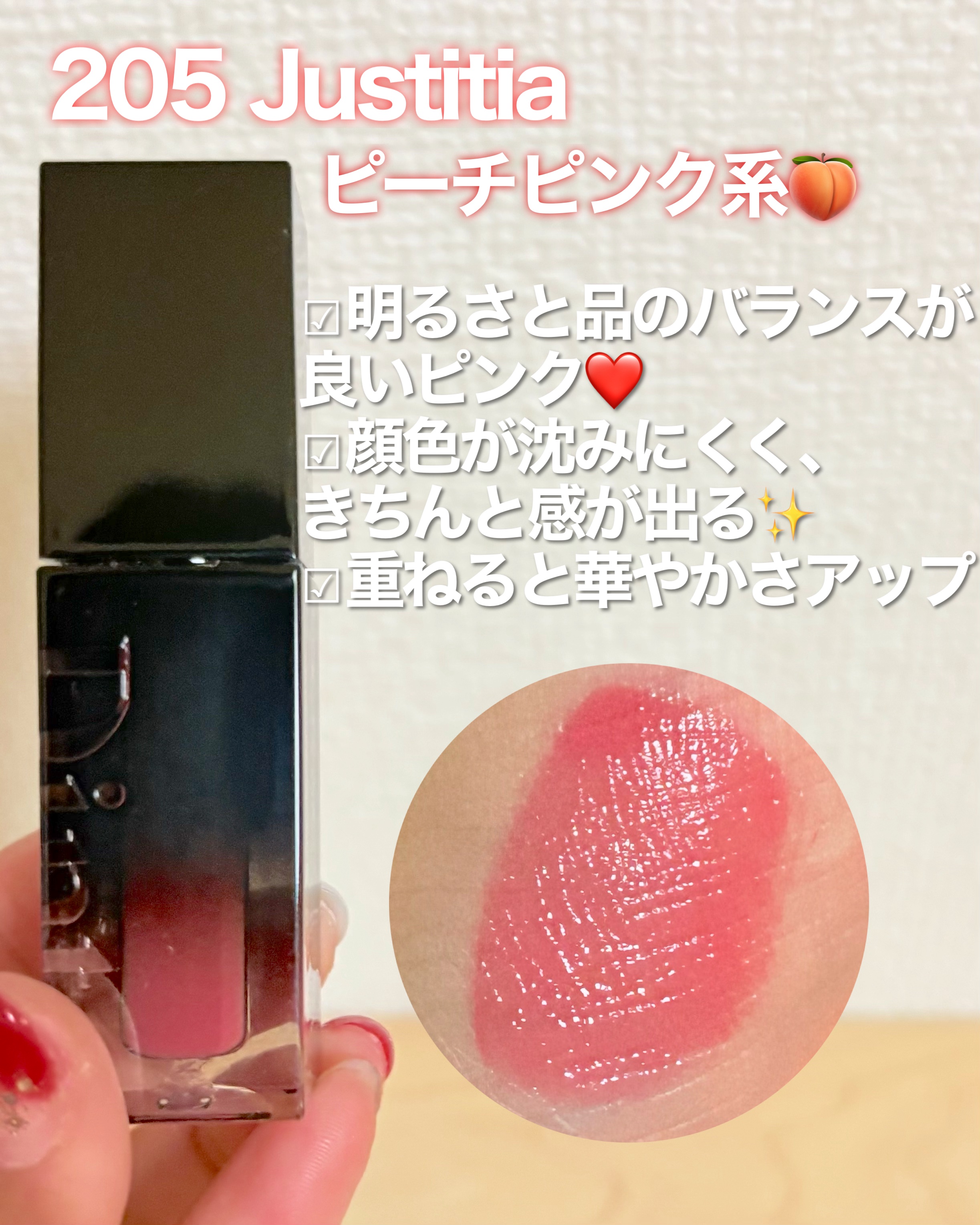 - <201 ノビリタス> 水、ジフェニルジメチコン、リンゴ酸ジイソステアリル、ビスジグリセリルポリアシルアジペート-2、オクチルドデカノール、水添ポリイソブテン、トリメチルシロキシフェニルジメチコン、ジグリセリン、セチルPEG/PPG-10/1ジメチコン、DPG、ポリソルベート60、イソステアリン酸ソルビタン、ペンチレングリコール、(アクリル酸ヒドロキシエチル/アクリロイルジメチルタウリンNa)コポリマー、セテアリルアルコール、スクワラン、酸化チタン、黄4、赤227、エチルヘキシルグリセリン、安息香酸ベンジル、黄5、香料、水酸化Al、ポリアクリル酸アンモニウム、リナロール、フェノキシエタノール、BG、塩化Na、青1、ヘキシルシンナマル、トコフェロール <202 ソフィア> 水、ジフェニルジメチコン、リンゴ酸ジイソステアリル、オクチルドデカノール、水添ポリイソブテン、トリメチルシロキシフェニルジメチコン、ジグリセリン、DPG、セチルPEG/PPG-10/1ジメチコン、ポリソルベート60、イソステアリン酸ソルビタン、ペンチレングリコール、(アクリル酸ヒドロキシエチル/アクリロイルジメチルタウリンNa)コポリマー、セテアリルアルコール、スクワラン、酸化チタン、黄5、赤227、エチルヘキシルグリセリン、安息香酸ベンジル、香料、リナロール、水酸化Al、ポリアクリル酸アンモニウム、青1、BG、フェノキシエタノール、ヘキシルシンナマル、トコフェロール <203 ディビニタス> 水、ジフェニルジメチコン、リンゴ酸ジイソステアリル、ビスジグリセリルポリアシルアジペート-2、オクチルドデカノール、水添ポリイソブテン、トリメチルシロキシフェニルジメチコン、ジグリセリン、セチルPEG/PPG-10/1ジメチコン、DPG、ポリソルベート60、イソステアリン酸ソルビタン、ペンチレングリコール、(アクリル酸ヒドロキシエチル/アクリロイルジメチルタウリンNa)コポリマー、セテアリルアルコール、スクワラン、酸化チタン、黄5、赤227、エチルヘキシルグリセリン、安息香酸ベンジル、香料、水酸化Al、ポリアクリル酸アンモニウムリナロール、青1、フェノキシエタノール、BG、ヘキシルシンナマル、トコフェロール <204 モデスティア> 水、ジフェニルジメチコン、リンゴ酸ジイソステアリル、オクチルドデカノール、ビスジグリセリルポリアシルアジペート-2、水添ポリイソブテン、トリメチルシロキシフェニルジメチコン、ジグリセリン、DPG、セチルPEG/PPG-10/1ジメチコン、ポリソルベート60、イソステアリン酸ソルビタン、ペンチレングリコール、(アクリル酸ヒドロキシエチル/アクリロイルジメチルタウリンNa)コポリマー、セテアリルアルコール、スクワラン、酸化チタン、黄5、赤104(1)、赤227、エチルヘキシルグリセリン、安息香酸ベンジル、香料、青1、水酸化Al、ポリアクリル酸アンモニウム、リナロール、フェノキシエタノール、BG、ヘキシルシンナマル、トコフェロール <205 ユスティティア> 水、ジフェニルジメチコン、リンゴ酸ジイソステアリル、ビスジグリセリルポリアシルアジペート-2、オクチルドデカノール、水添ポリイソブテン、トリメチルシロキシフェニルジメチコン、ジグリセリン、セチルPEG/PPG-10/1ジメチコン、DPG、ポリソルベート60、イソステアリン酸ソルビタン、ペンチレングリコール、(アクリル酸ヒドロキシエチル/アクリロイルジメチルタウリンNa)コポリマー、セテアリルアルコール、スクワラン、酸化チタン、黄4、赤227、エチルヘキシルグリセリン、安息香酸ベンジル、黄5、香料、水酸化Al、ポリアクリル酸アンモニウム、リナロール、フェノキシエタノール、BG、塩化Na、青1、ヘキシルシンナマル、トコフェロール <206 グラティア> 水、ジフェニルジメチコン、リンゴ酸ジイソステアリル、ビスジグリセリルポリアシルアジペート-2、オクチルドデカノール、水添ポリイソブテン、トリメチルシロキシフェニルジメチコン、ジグリセリン、セチルPEG/PPG-10/1ジメチコン、DPG、ポリソルベート60、イソステアリン酸ソルビタン、ペンチレングリコール、(アクリル酸ヒドロキシエチル/アクリロイルジメチルタウリンNa)コポリマー、セテアリルアルコール、スクワラン、酸化チタン、黄4、赤227、エチルヘキシルグリセリン、安息香酸ベンジル、黄5、香料、水酸化Al、ポリアクリル酸アンモニウム、リナロール、フェノキシエタノール、BG、塩化Na、青1、ヘキシルシンナマル、トコフェロール <213 リベルタス> 水、ジフェニルジメチコン、リンゴ酸ジイソステアリル、ビスジグリセリルポリアシルアジペート-2、オクチルドデカノール、水添ポリイソブテン、トリメチルシロキシフェニルジメチコン、ジグリセリン、DPG、セチルPEG/PPG-10/1ジメチコン、ポリソルベート60、イソステアリン酸ソルビタン、1,2-ヘキサンジオール、ペンチレングリコール、酸化チタン(CI 77891)、(アクリル酸ヒドロキシエチル/アクリロイルジメチルタウリンNa)コポリマー、セテアリルアルコール、スクワラン、黄5、エチルヘキシルグリセ