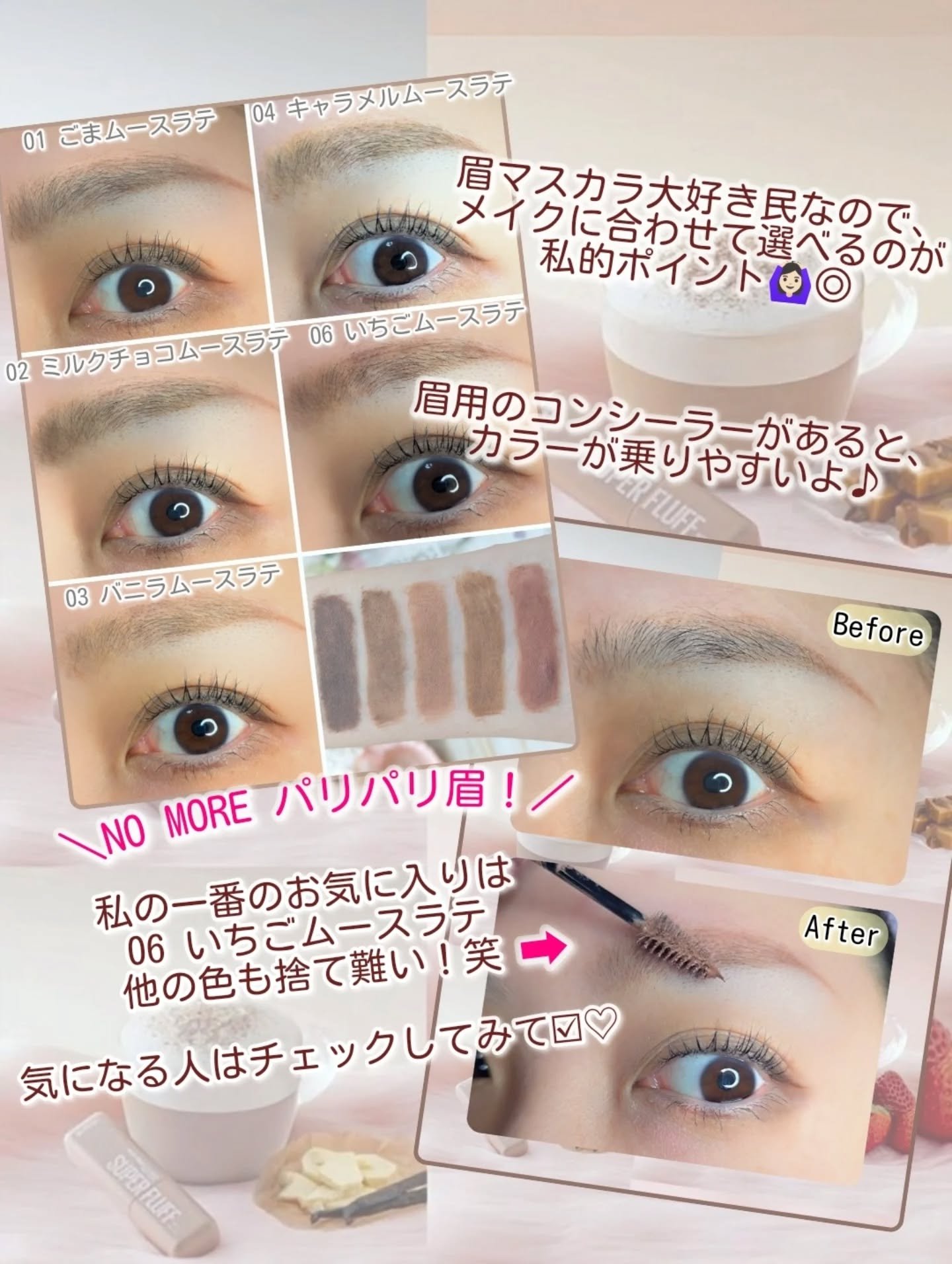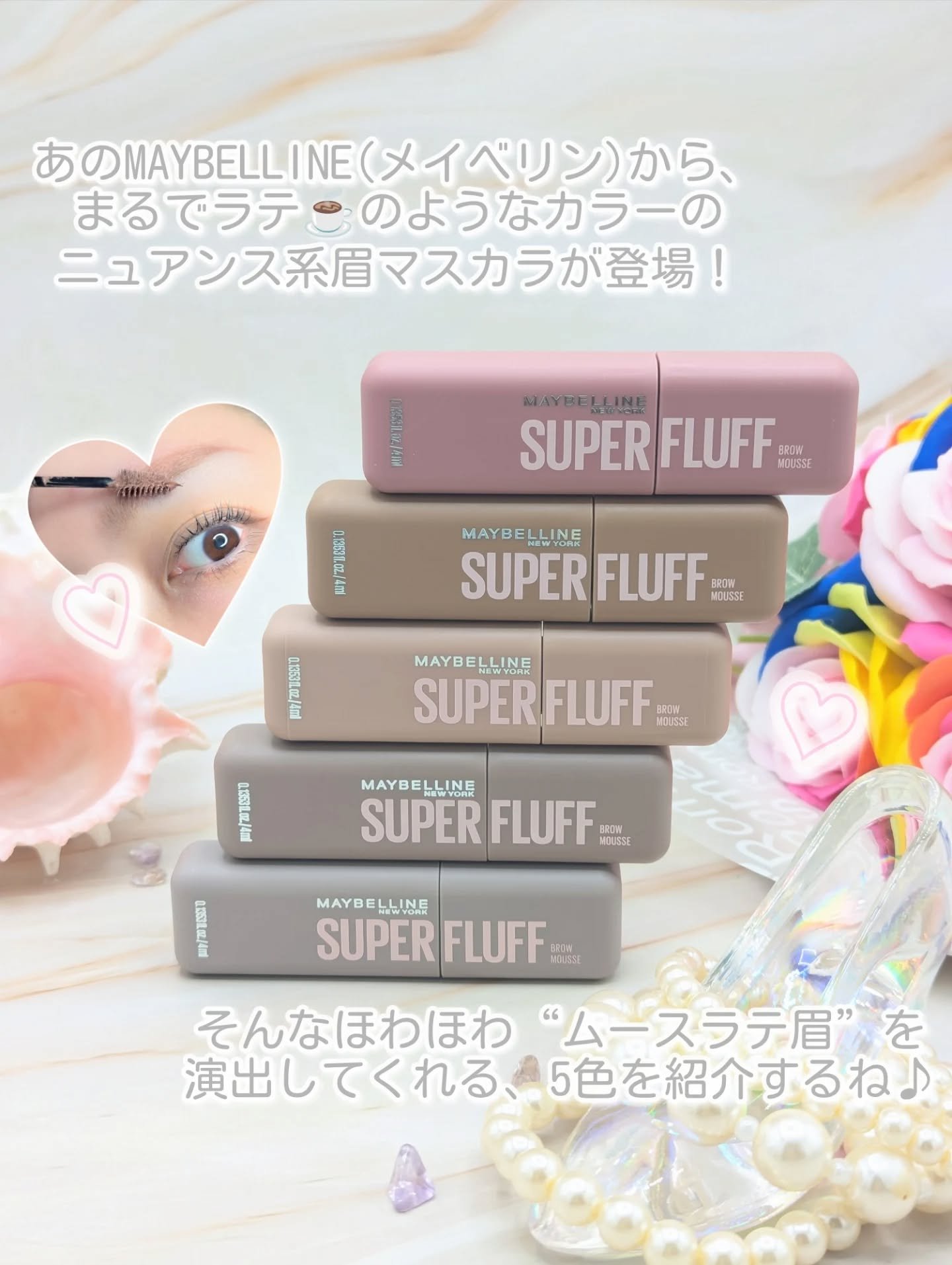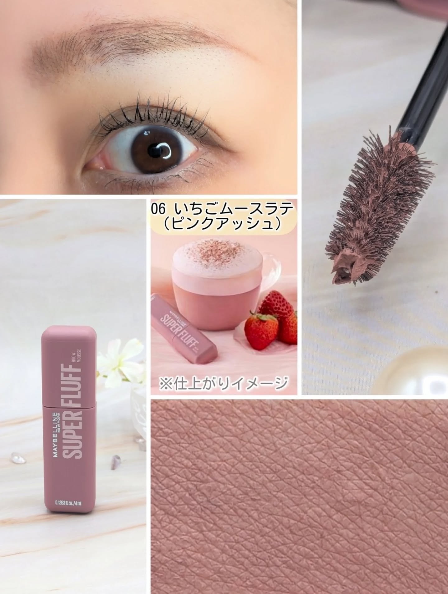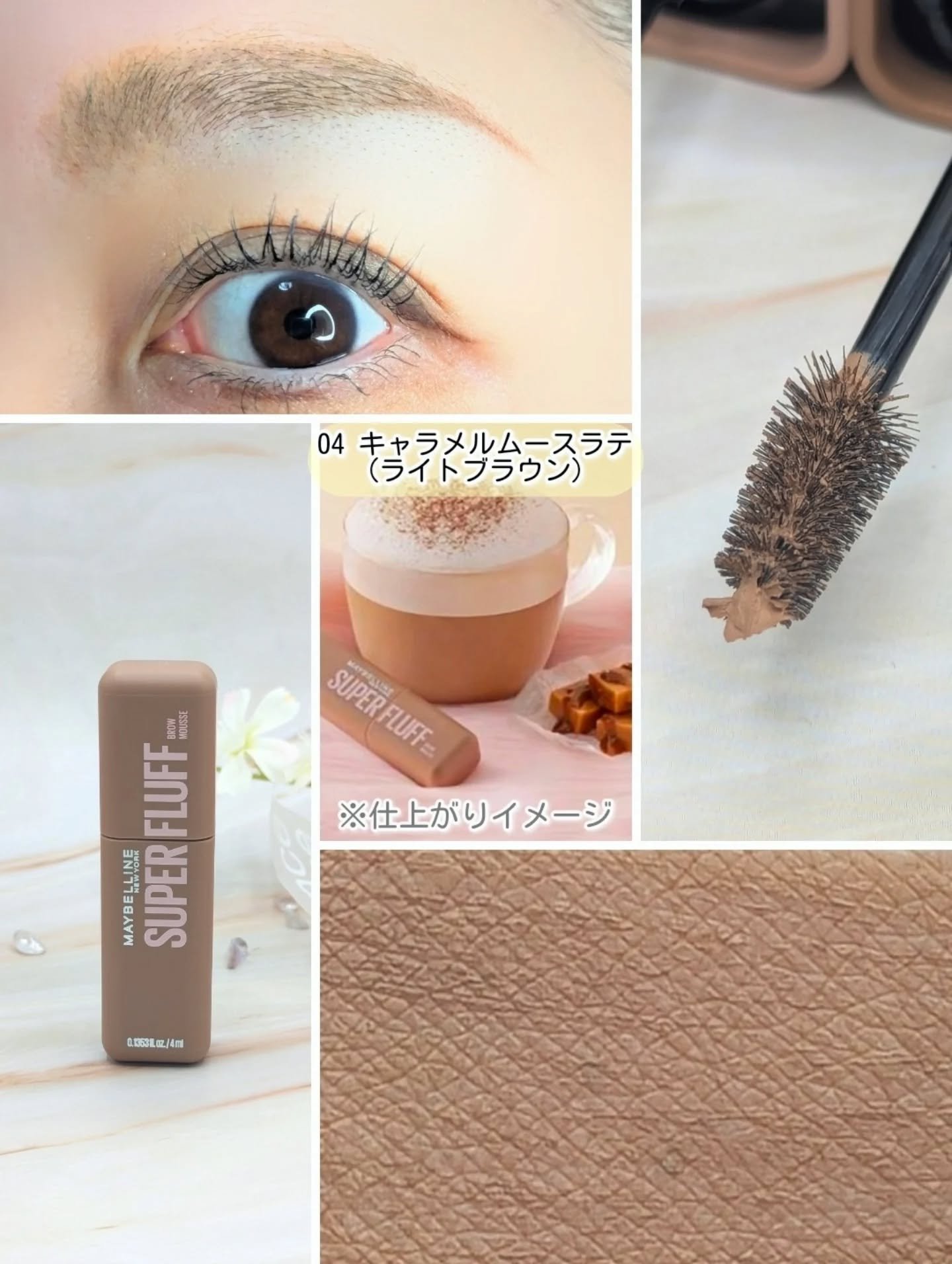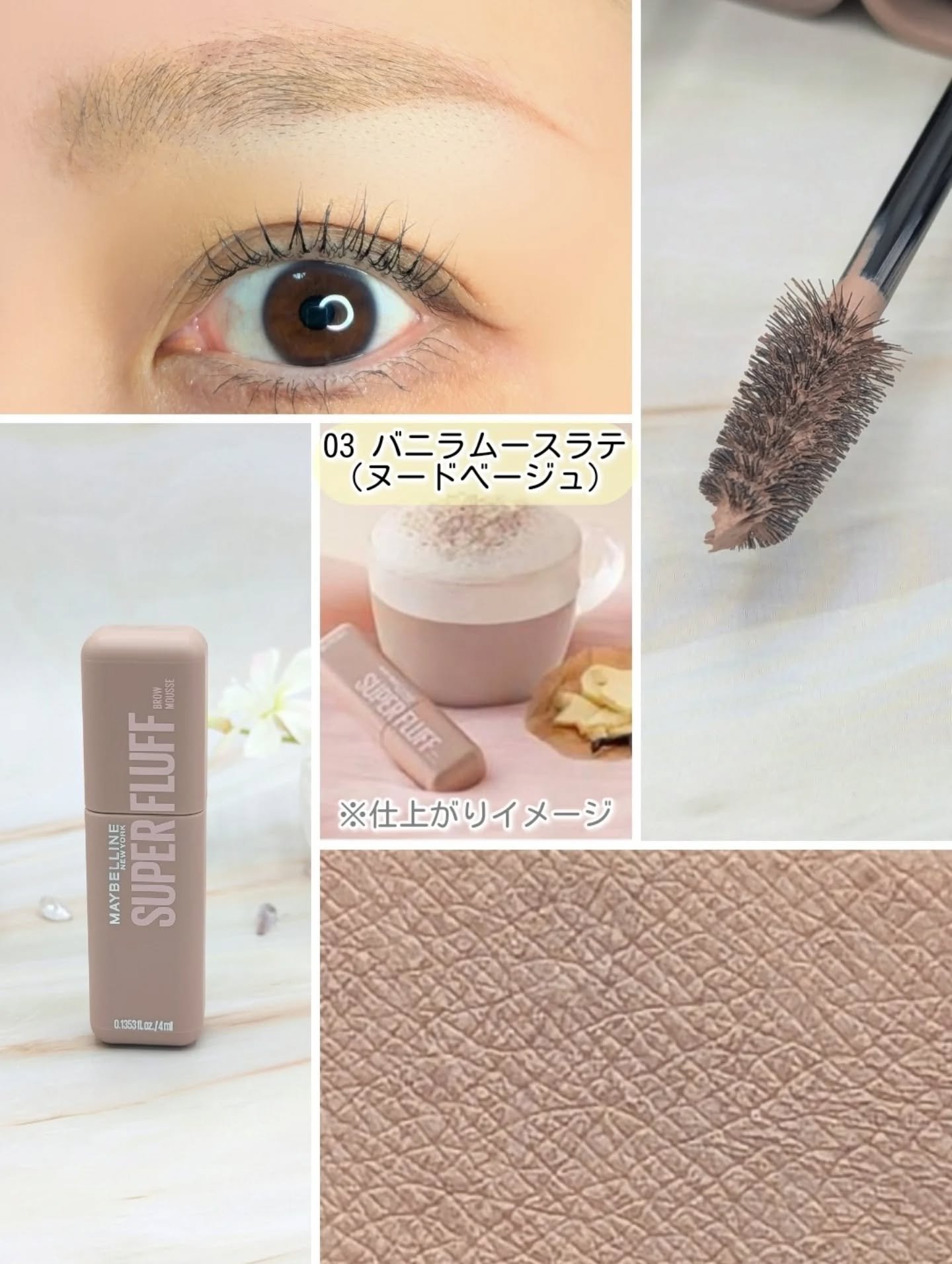 - \NO MORE パリパリ眉!/ 1日*ずっと、ほわっふわ眉。ムラなく色づき、黒眉ミュート ★商品特徴 ①エアリームーステクスチャー 空気とパウダーを混ぜて泡立てたような、軽やかなホイップムーステクスチャーだから、 べったりつかず、固くならない。ふわふわ仕上がり24時間*つづく。 ②テク要らずミニブラシ 先端に向かって細くなるブラシが、細かい毛も余さずキャッチするから、眉頭から眉尻まで均一にムラなく塗れる。 ③全5色展開 なりたい印象に合わせて選べる5色展開。 自眉の黒を消して存在感を抑えたい方にも、髪色に合わせた自然な眉にしたい方にも。 ★カラー展開 -ピンクアッシュ :いちごムースラテ -ライトブラウン :キャラメルムースラテ -ヌードベージュ :バニラムースラテ -アッシュブラウン:ミルクチョコムースラテ -グレーブラウン :ごまムースラテ * メイベリンニューヨーク調べ。個人差があります。