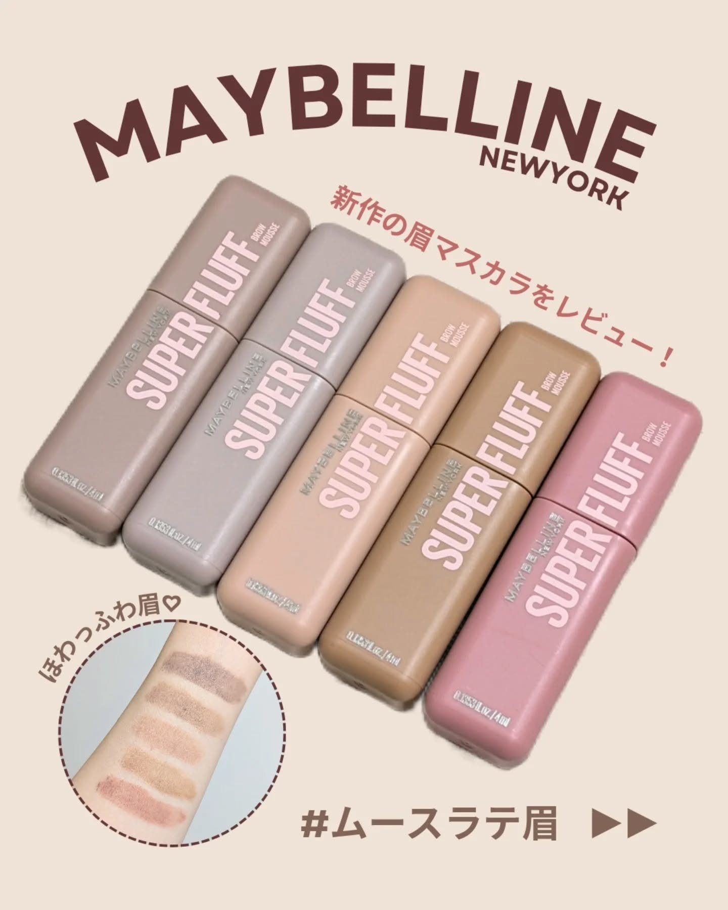- \NO MORE パリパリ眉!/ 1日*ずっと、ほわっふわ眉。ムラなく色づき、黒眉ミュート ★商品特徴 ①エアリームーステクスチャー 空気とパウダーを混ぜて泡立てたような、軽やかなホイップムーステクスチャーだから、 べったりつかず、固くならない。ふわふわ仕上がり24時間*つづく。 ②テク要らずミニブラシ 先端に向かって細くなるブラシが、細かい毛も余さずキャッチするから、眉頭から眉尻まで均一にムラなく塗れる。 ③全5色展開 なりたい印象に合わせて選べる5色展開。 自眉の黒を消して存在感を抑えたい方にも、髪色に合わせた自然な眉にしたい方にも。 ★カラー展開 -ピンクアッシュ :いちごムースラテ -ライトブラウン :キャラメルムースラテ -ヌードベージュ :バニラムースラテ -アッシュブラウン:ミルクチョコムースラテ -グレーブラウン :ごまムースラテ * メイベリンニューヨーク調べ。個人差があります。