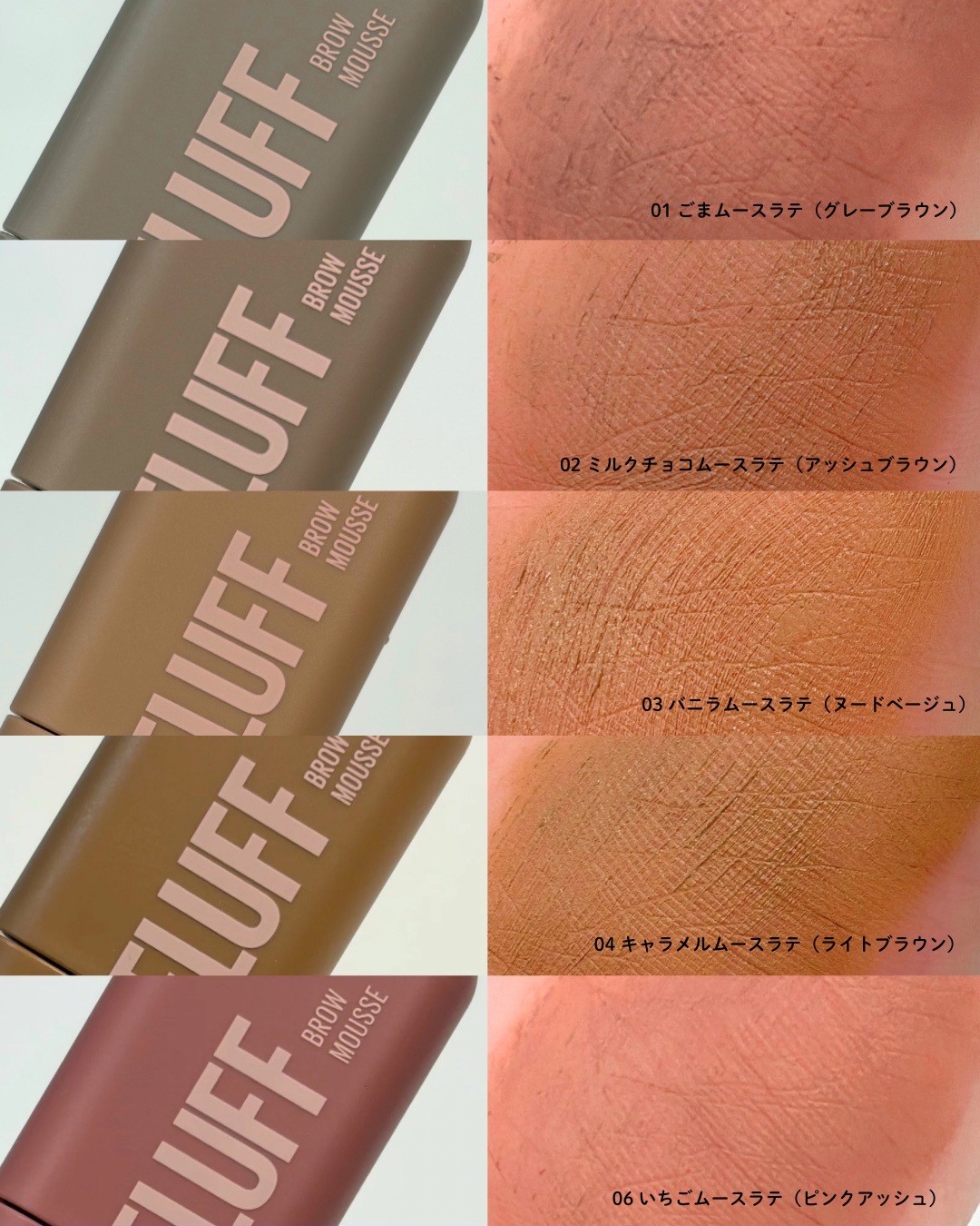 - \NO MORE パリパリ眉!/ 1日*ずっと、ほわっふわ眉。ムラなく色づき、黒眉ミュート ★商品特徴 ①エアリームーステクスチャー 空気とパウダーを混ぜて泡立てたような、軽やかなホイップムーステクスチャーだから、 べったりつかず、固くならない。ふわふわ仕上がり24時間*つづく。 ②テク要らずミニブラシ 先端に向かって細くなるブラシが、細かい毛も余さずキャッチするから、眉頭から眉尻まで均一にムラなく塗れる。 ③全5色展開 なりたい印象に合わせて選べる5色展開。 自眉の黒を消して存在感を抑えたい方にも、髪色に合わせた自然な眉にしたい方にも。 ★カラー展開 -ピンクアッシュ :いちごムースラテ -ライトブラウン :キャラメルムースラテ -ヌードベージュ :バニラムースラテ -アッシュブラウン:ミルクチョコムースラテ -グレーブラウン :ごまムースラテ * メイベリンニューヨーク調べ。個人差があります。