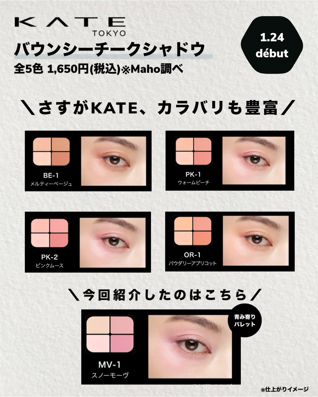KATE様さすがの新発想‼️またまた凄いアイテムが登場します✨アイシャドウを頬まで広げて"目もと印象拡大"👀「頬までが目もと」としてメイクするなんて新しすぎる👏発色は淡め、粉とは思えないようなふわむに質感で、個人的には指塗りが扱いやすい🙆♀...