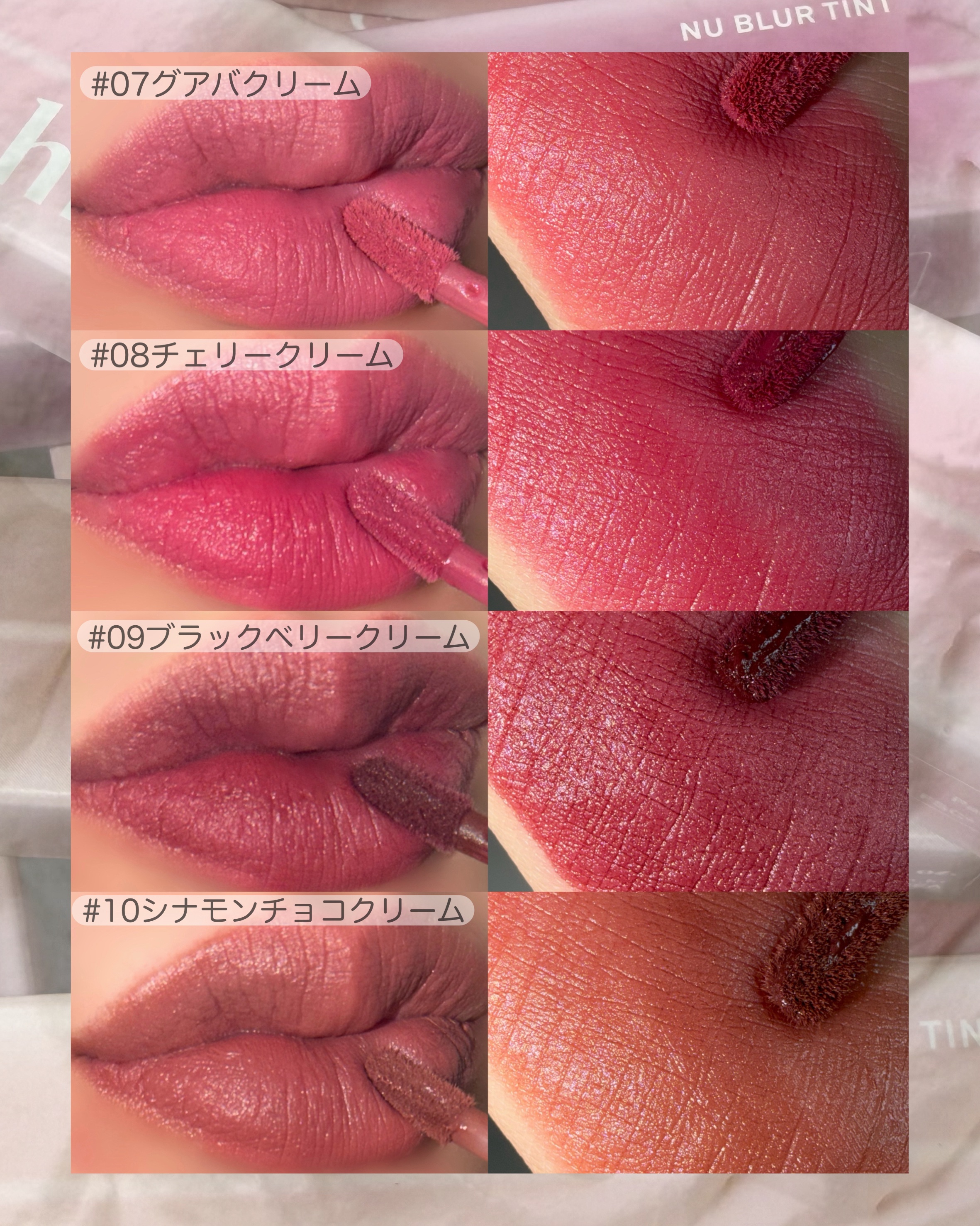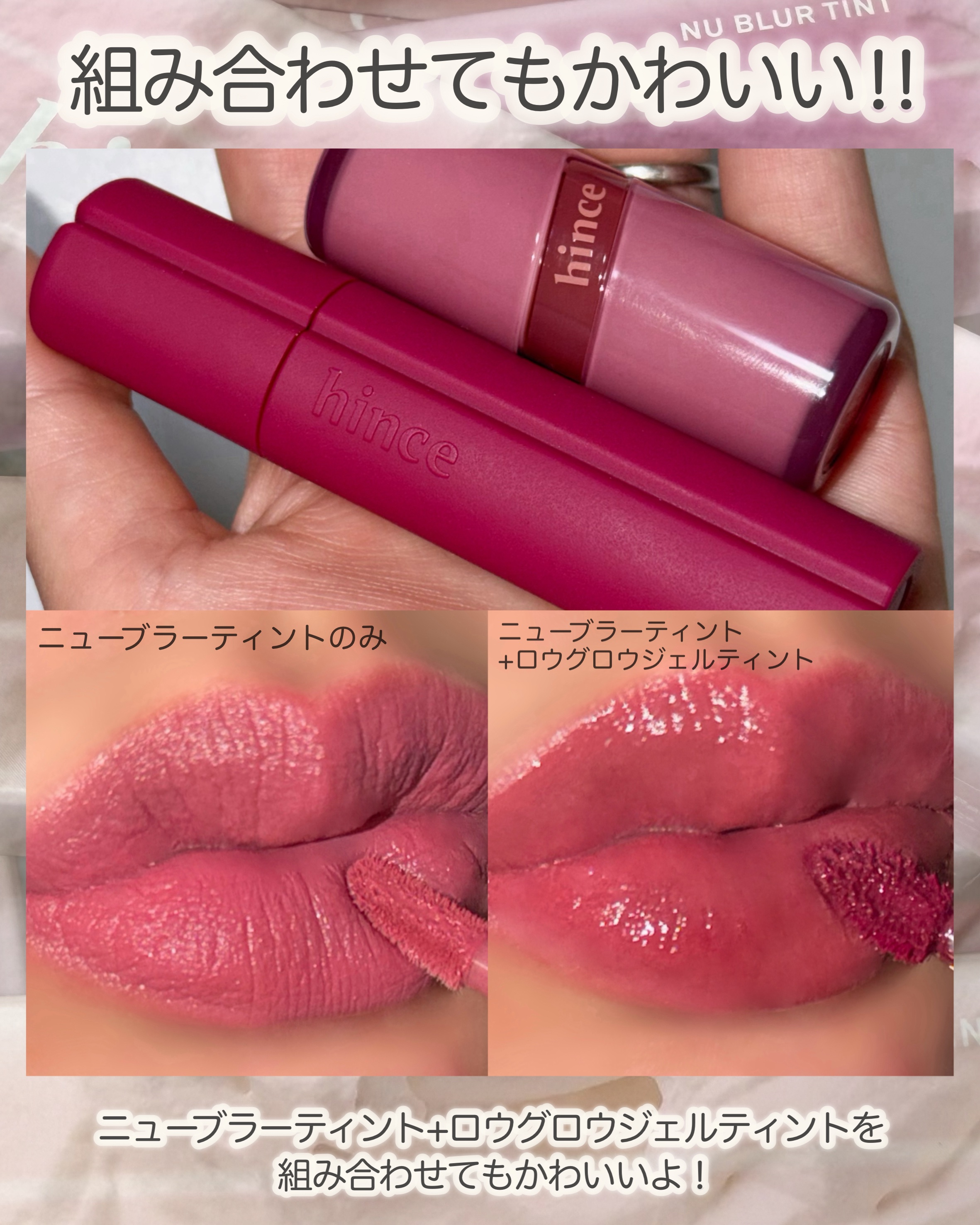 \ふわふわフルーツクリームリップ登場♡/hinceの1月新作は、ホイップのようななめらかなマットリップ「ニューブラーティント」ふんわりした仕上がりで✔︎色ムラカバー✔︎マットなのに乾燥しにくい✔︎軽くてストレスフリーな付け心地全10色、フルー...