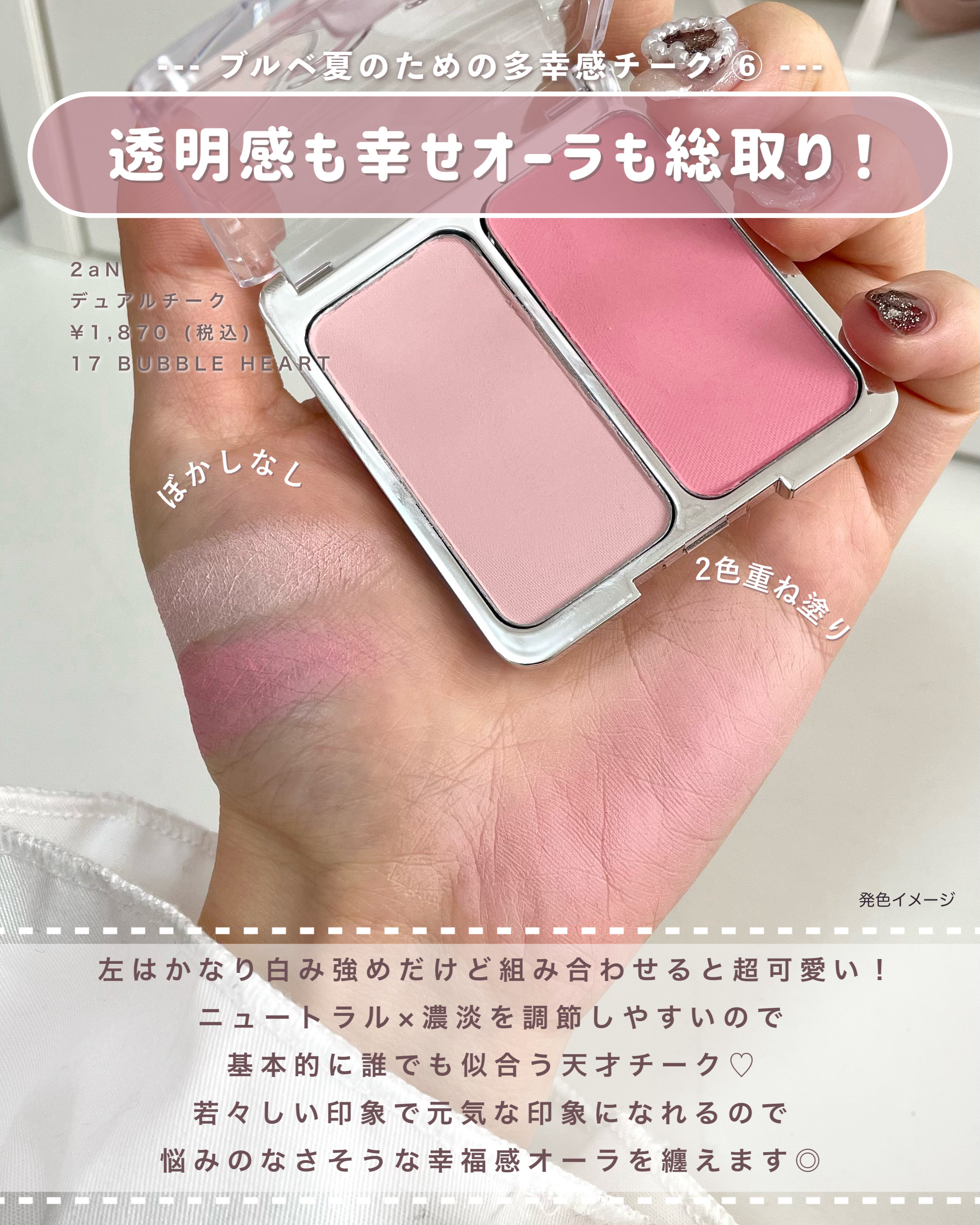 | リキッドチークランキング第5位 | クリアな発色とソフトフォーカスされたようなフォギー質感で、簡単にフレッシュな印象に仕上げるリキッドチークが登場🐶✨✨ | 詳細を見る | |