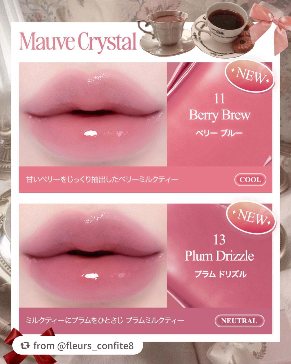 日本限定カラーが新発売🎉まるでクリスタルのような輝き放つツヤリップ💎#クリスタルグラムティントみずみずしい潤いとクリアな透明感でちゅるんと弾けるリップに仕上がる💋💕日本限定カラーは肌を美しく見せ、ナチュラルな血色感と洗練された雰囲気を宿す10...