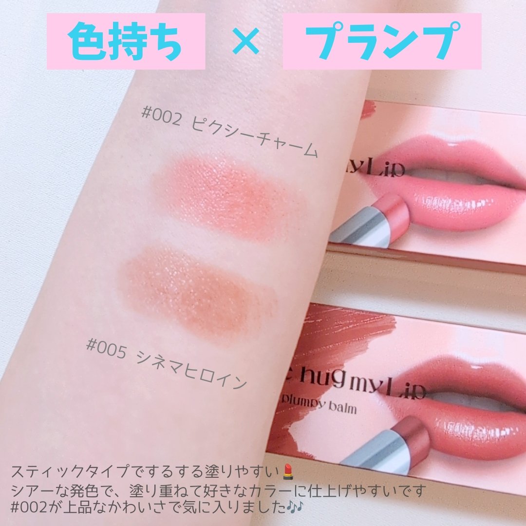 _up2meさまからいただきました。꒰アップトゥーミーハグマイリップカラーロックプランピーバーム3月19日新発売🌷なめらかな塗り心地で唇をやさしく包み込みながら、質感と発色が続くプランプリップ👄𓂃𓈒𓏸002ピクシーチャーム▶︎ふわっと可憐。誰...