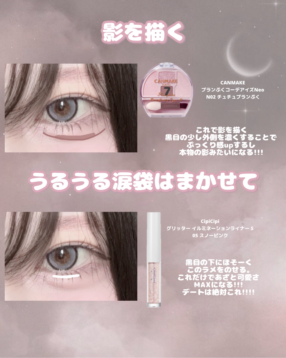 ❁︎❁︎ブラウンよりナチュラル!涙袋メイク❁︎❁︎これはもう盛れすぎてやばい…私みたいな一重、奥二重でもナチュラルタレ目でデカ目に見える詐欺が出来てしまう…一重、奥二重で比較画像がなくてごめんなさい…🙇♀️┄┄୨୧┄┄涙袋の影って、薄いかな...