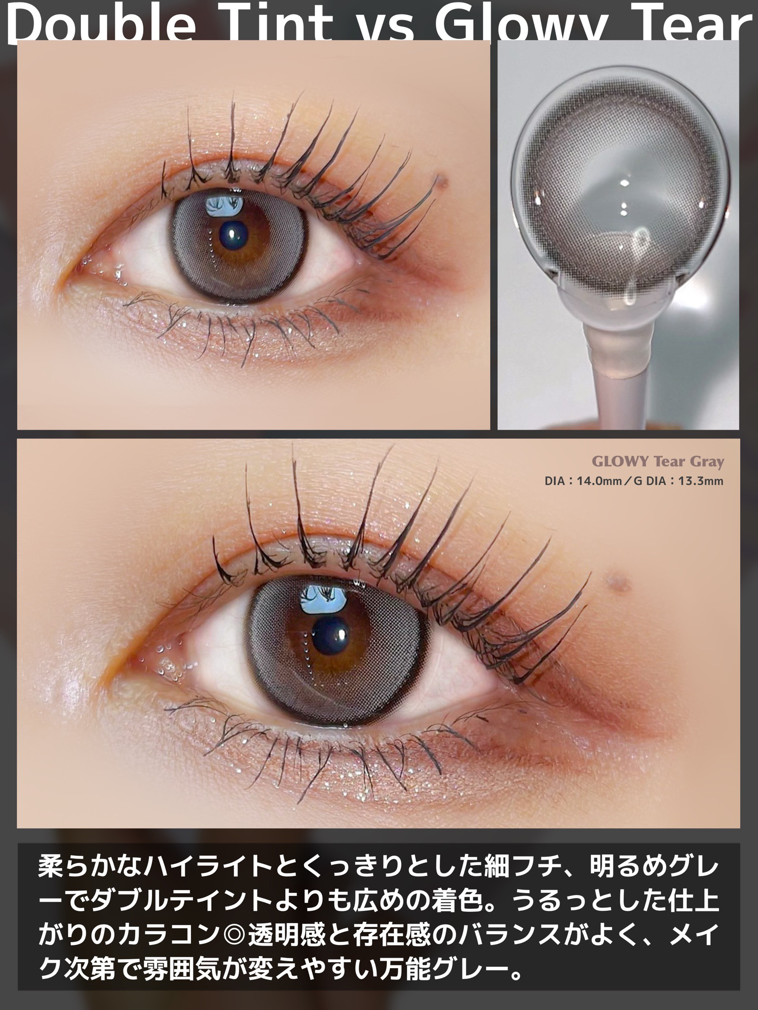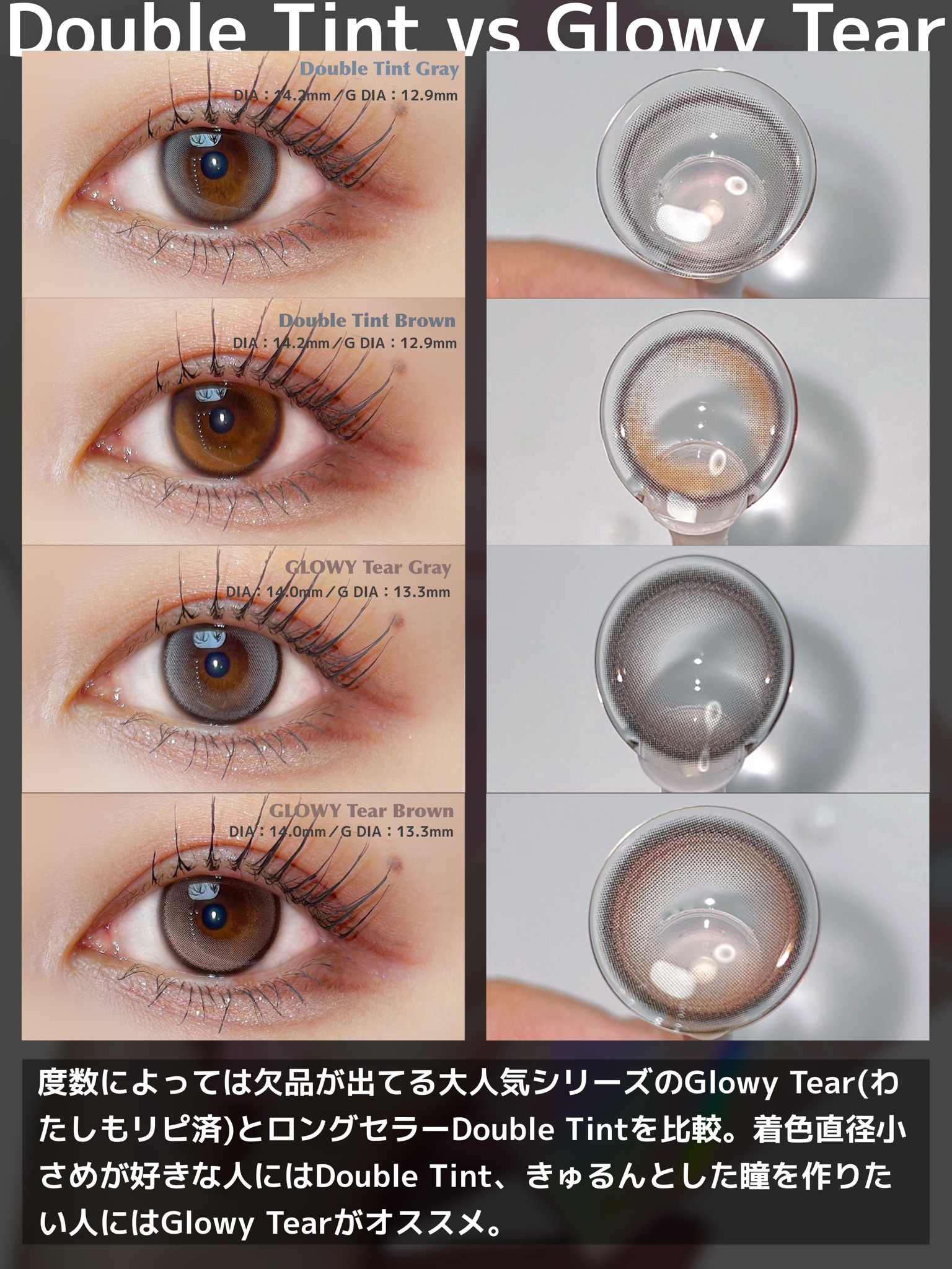 まわっても気にならないダブルハイライターカラコン4選比較したよ!私は、GlowyTearBrownがお気に入り👍🏻・GlowyTearBrown・GlowyTearGray📝うるぷる×ツヤの水光カラコン。 着色直径13.3mmでちゃんと盛れる...