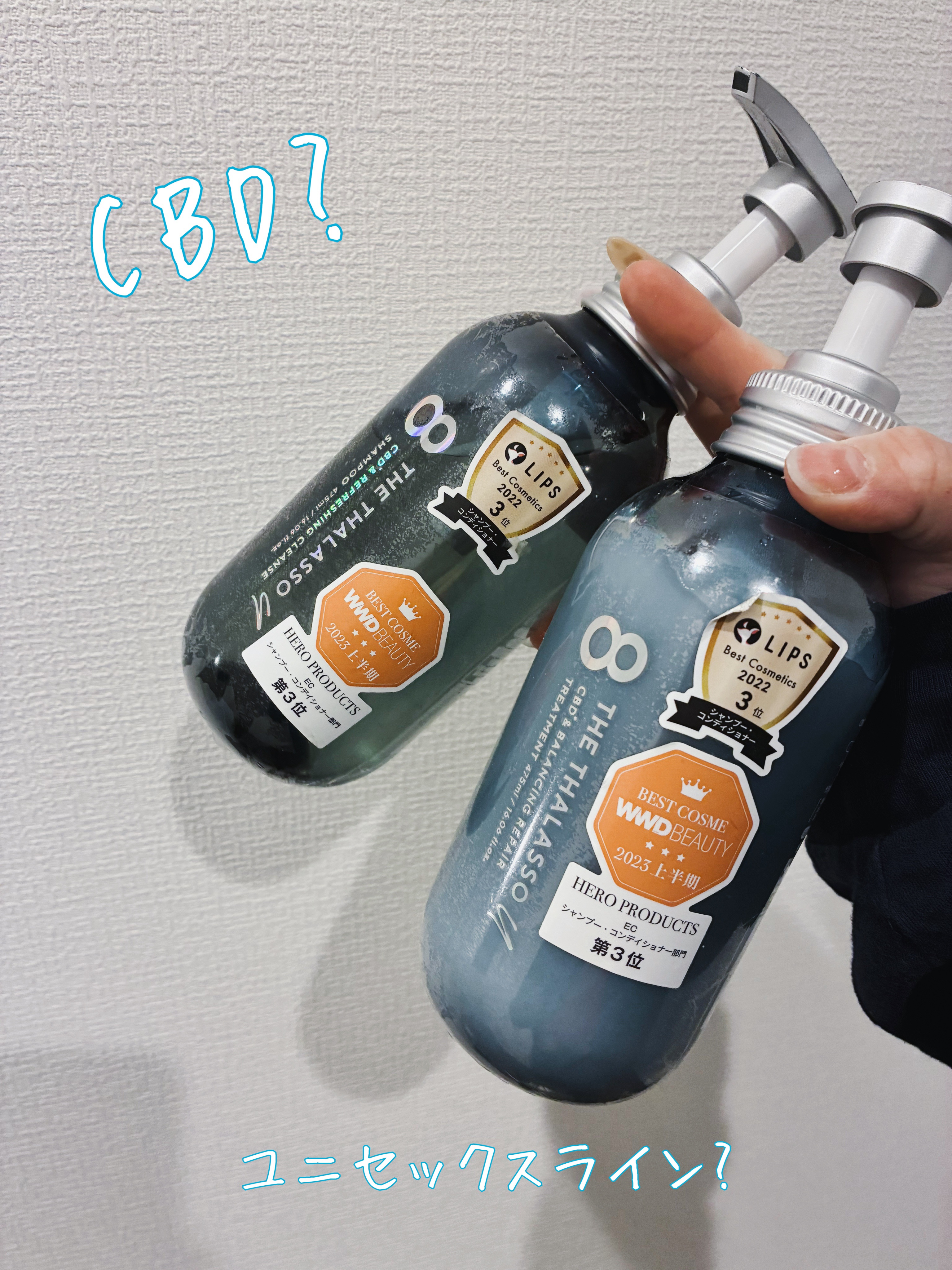LIPSでも大人気のエイトザタラソ🫧 今回初めて使いましたが、これシャントリで過去一好きかもしれない😍 エイトザタラソ ユーはスキンケア発想で髪を保水するエイトザタラソのユニセックスライン。独自成分のCBDと海洋美髪成分が配合されていて、保水しつつ頭皮や髪のダメージの修復ケアしてくれます🐟 ムスキーサボンの香りはどこか王道のサボン系の香りではあるものの甘さもほのかにあり、男女問わずに使いやすいし、この香り大好きでした✨