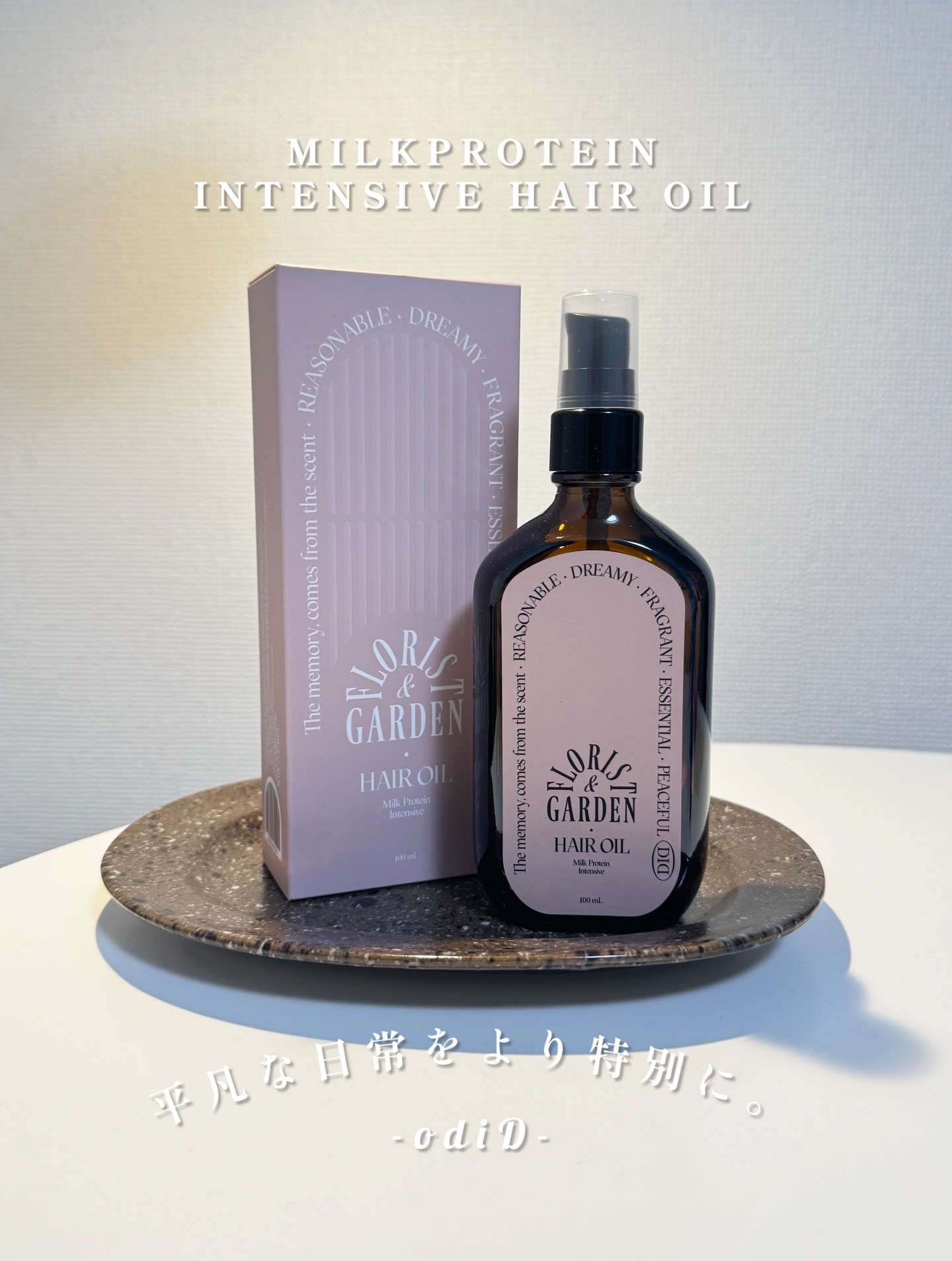 オーディッド(odiD)ミルクプロテインインテンシブヘアオイルFLORISTGARDEN熟したレッドベリーのハーモニーに、優しく香るバラとスイートピーを加えたラブリーな甘さが魅力のフルーティーフローラルな香り高濃縮アルガンオイルと、その他5種...