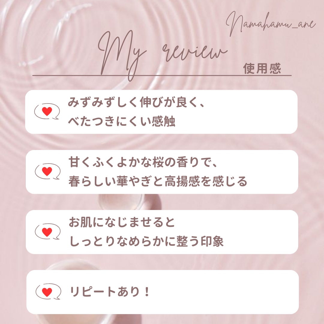 | 保湿しながら、香りを楽しみ、お肌を柔らかく仕上げてくれます😍 | 詳細を見る |