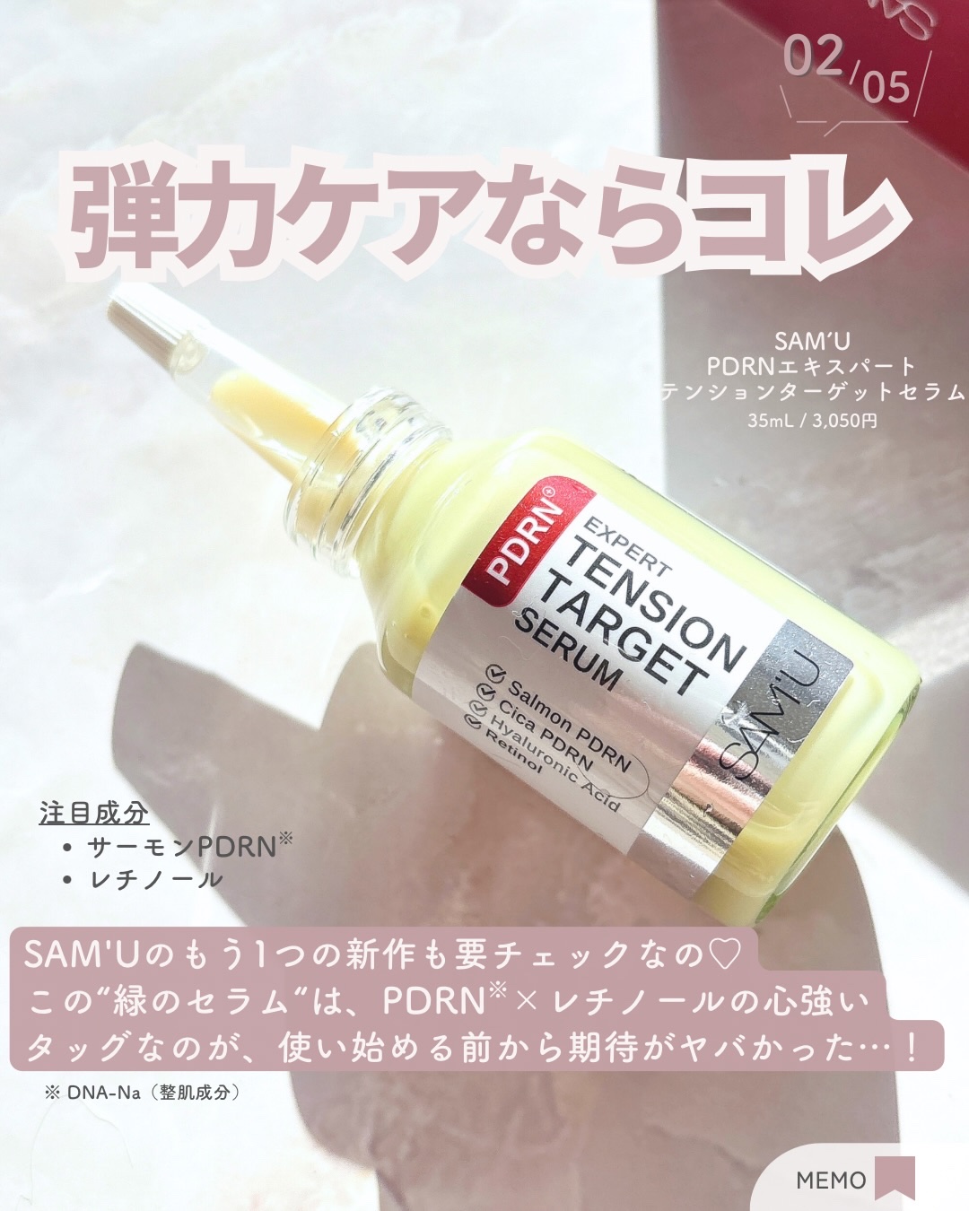 \\SAM’U//▫️PDRNエキスパートテンションターゲットセラム肌のツヤ・ハリが必要なタイミングでケア✨使用感の心地よさを追求した高機能PDRNライン🌙ヒアルロン酸キューブにサーモン由来PDRN*を配合🫧50日未満で摘み取った若葉シカPD...