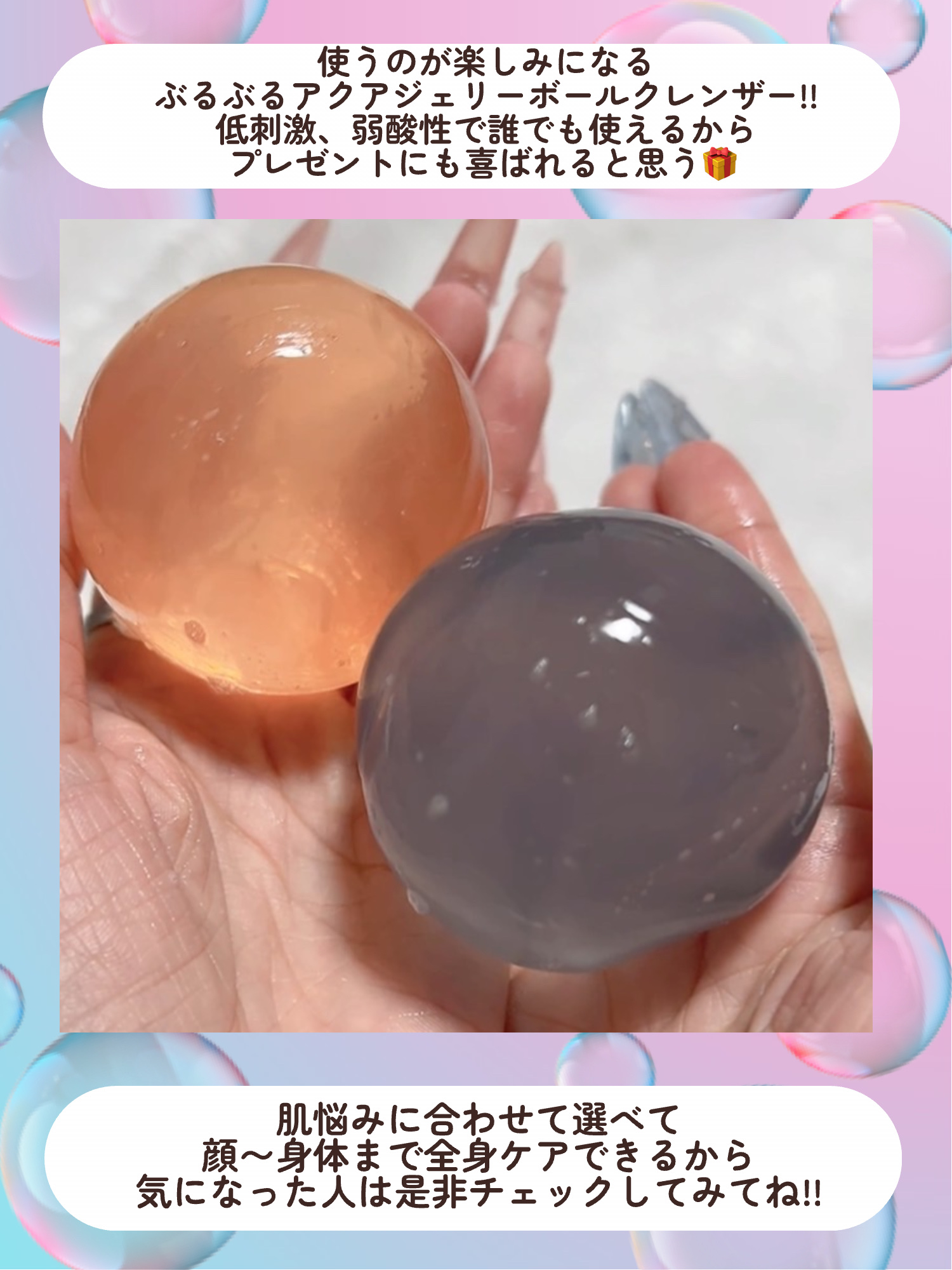 ⚪️bebare⚪️アクアジェリーボールクレンザー🫧🫧🫧ぷるぷるのボール型フェイス&ボディクレンザー🫧🫧🫧肌タイプ問わず使えるからその日の気分で使いわけるのも良さそう👍🔵フレッシュアクア(保湿用)(ブルー):ヒアルロン酸、vi🟠ピーチピンク(...