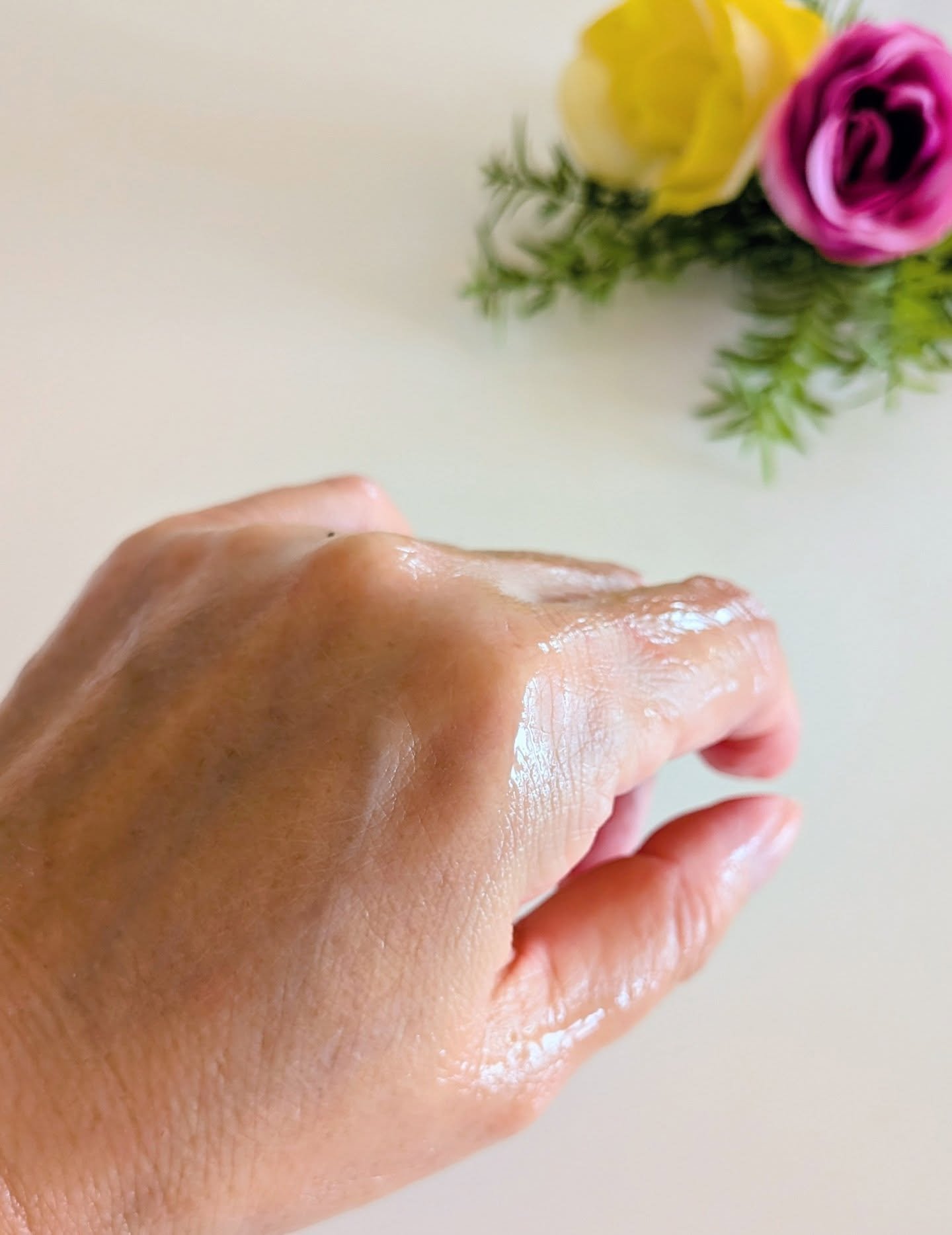 透明でとろみあるテクスチャで肌なじみもよく、伸びもいい。ベタつかないさらっとした使用感です。 1回の塗布で72時間うるおいをキープし、みずみずしい透明感あふれるツヤ肌へ導いてくれるそうです。