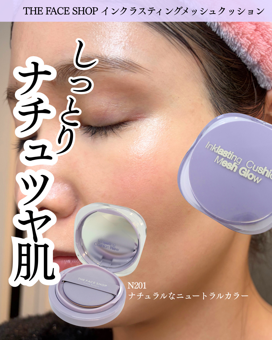 𓍯インクラスティングメッシュクッション[N201]⌇TheFaceShopメッシュに入れてより細かく、より軽く、より薄くなったNEWクッション🥯💜バクチオール、パンテノール、5種セラミドなどスキンケア成分を70%配合*✨じゅわ〜っとみずみずし...