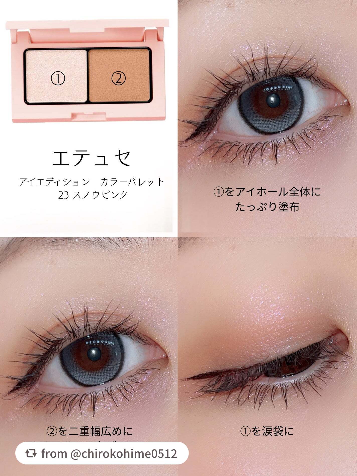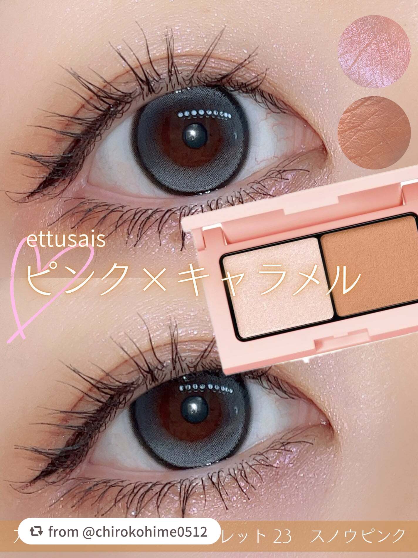 \ettusais新作/アイエディション カラーパレット23 スノウピンク淡くて可愛らしいピンクパールとふわっとマットなキャラメルの組み合わせが可愛い🩷🤎パールとマットの2つの質感で立体感もでるし簡単にアイメイクできて満足な仕上がりˎˊ˗#エ...