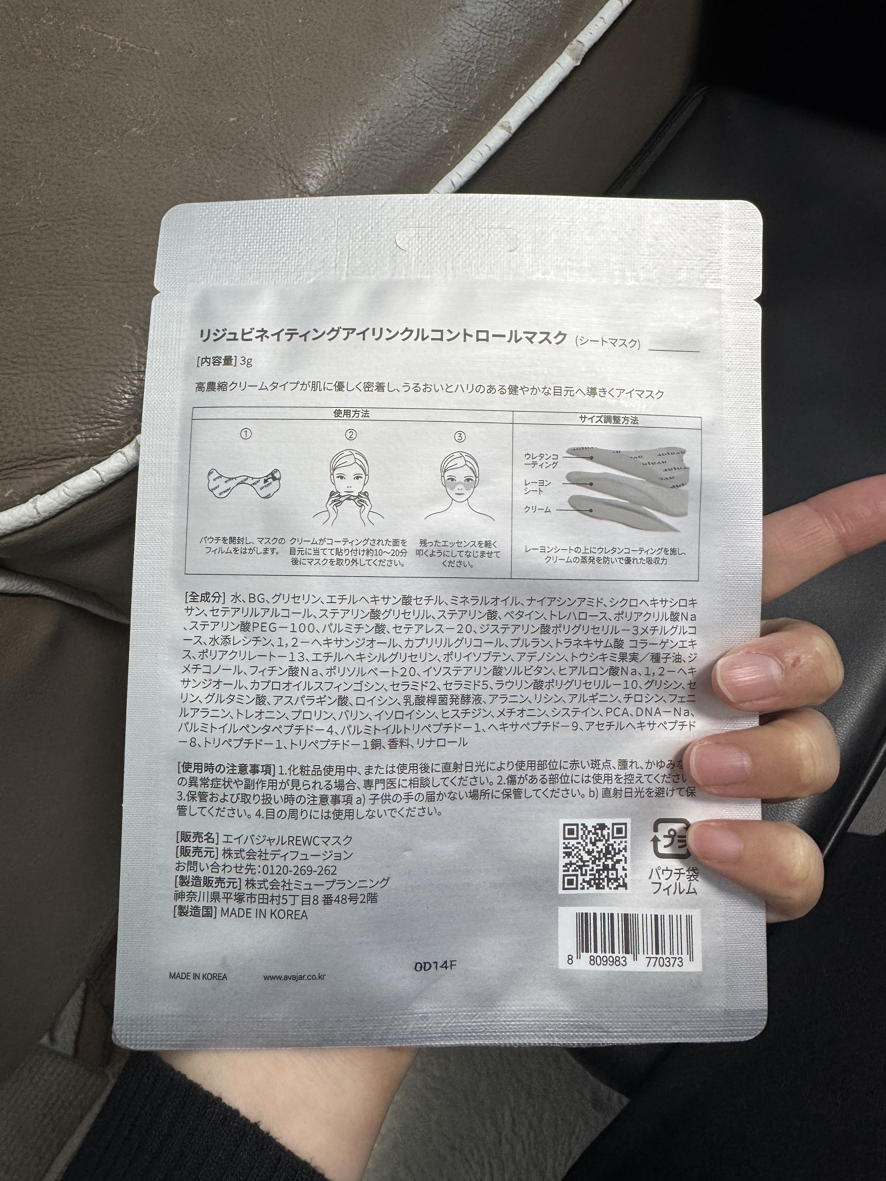商品詳細情報avajar リジュビネイティングアイリンクルコントロールマスク