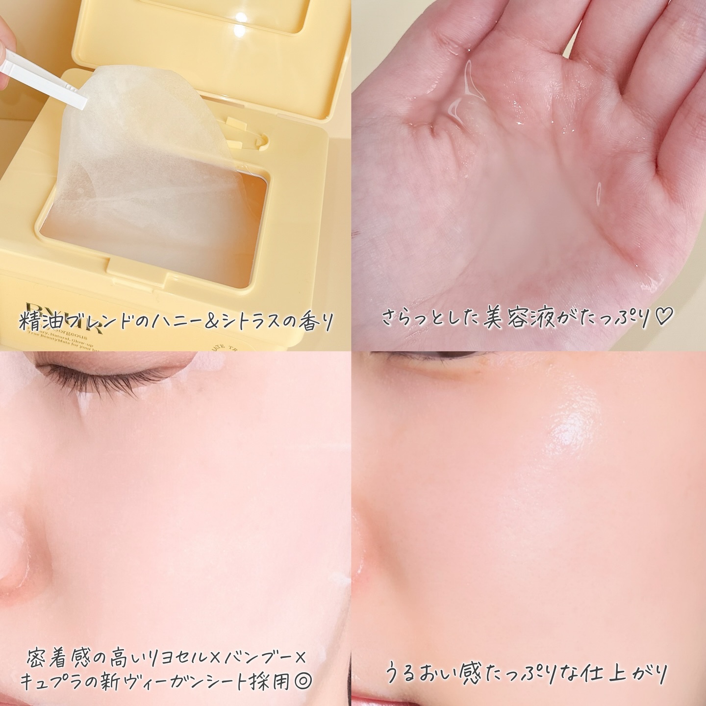 - ■大人気の大容量BOXマスクがリニューアル より中蓋が開けやすい容器をオリジナル開発し、開封するまでフレッシュな状態を保ちつつ、簡単に開封が可能になりました。 また、シートの厚みがアップし、よりフィット感の高いオリジナル形状シートにバージョンアップ! ゆるみ毛穴*³・乾燥ハリ不足肌をうるおいとハリで満たす 発酵ハチミツ*⁴&ナイアシンアミド*⁵。 酵母菌(サッカロミセス)で低温発酵させた低分子の発酵ハチミツ*⁴と3種のハチミツ成分*⁶、 ナイアシンアミド*⁵、韓国発酵エキス*⁷、5種のヒト型セラミド*⁸を配合。 コクのある美容液がぐんぐんなじみ、うるおいとふっくらハリで満たします。 甘さと爽やかさが共存するハニー&シトラスの香り。 ■先行予約:2025年12月24日公式オンラインストア ■全国発売:2026年1月22日 *¹乾燥した毛穴にうるおいを与えて毛穴の目立ちを気にならなくすること *²累計販売枚数:2023年10月〜2025年12月販売実績 *³乾燥による *⁴サッカロミセス/ハチミツ発酵液(整肌成分) *⁵整肌成分 *⁶ハチミツエキス、プロポリスエキス、ローヤルゼリーエキス(すべて整肌成分) *⁷バチルス発酵物(整肌成分) *⁸セラミドNP、セラミドNS、セラミドAS、セラミドAP、セラミドEOP(すべて整肌成分) *⁹肌あれを防ぐ *¹⁰整肌成分 *¹¹ツボクサ葉エキス、ツボクサ葉/茎エキス、ツボクサ根エキス(すべて整肌成分) *¹²角層まで *¹³カプリロイルサリチル酸(整肌成分) *¹⁴うるおいによる肌印象 *¹⁵カンジダボンビコラ/(グルコース/ナタネ油脂肪酸メチル)発酵物、DPG、ヒマワリ種子油(すべて整肌成分) *¹⁶ヒアルロン酸Na、ヒアルロン酸ヒドロキシプロピルトリモニウム、アセチルヒアルロン酸Na、加水分解ヒアルロン酸、ヒアルロン酸、ヒアルロン酸クロスポリマーNa、加水分解ヒアルロン酸Na、ヒアルロン酸K(すべて整肌成分) *¹⁷ナイアシンアミド、シアノコバラミン、デヒドロコレステロール(ビタミンD)、トコフェロール(ビタミンE)(すべて整肌成分) *¹⁸ブランドシリーズ累計