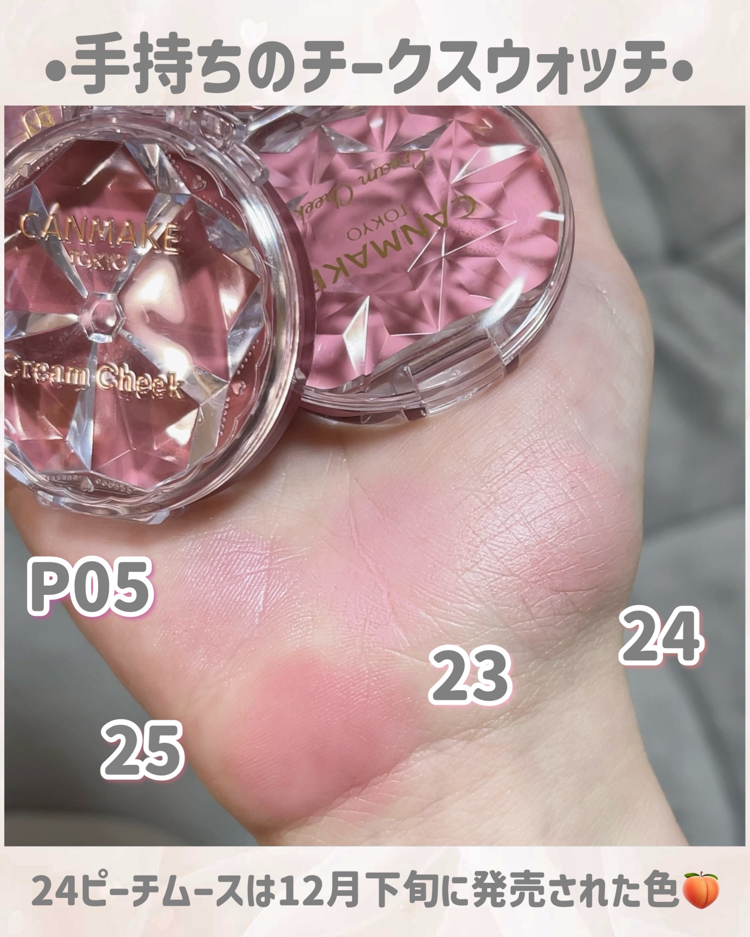 CANMAKE12月下旬発売の新作アイテムをシェアˎˊ˗じゅんわりクリアに色づくコーラルチークで多幸感たっぷりに仕上げるのが最近のお気に入り…♡つやパールが好きな方はパウダーチークス、さらっと仕上げたい方はクリームチークがおすすめです。クリー...