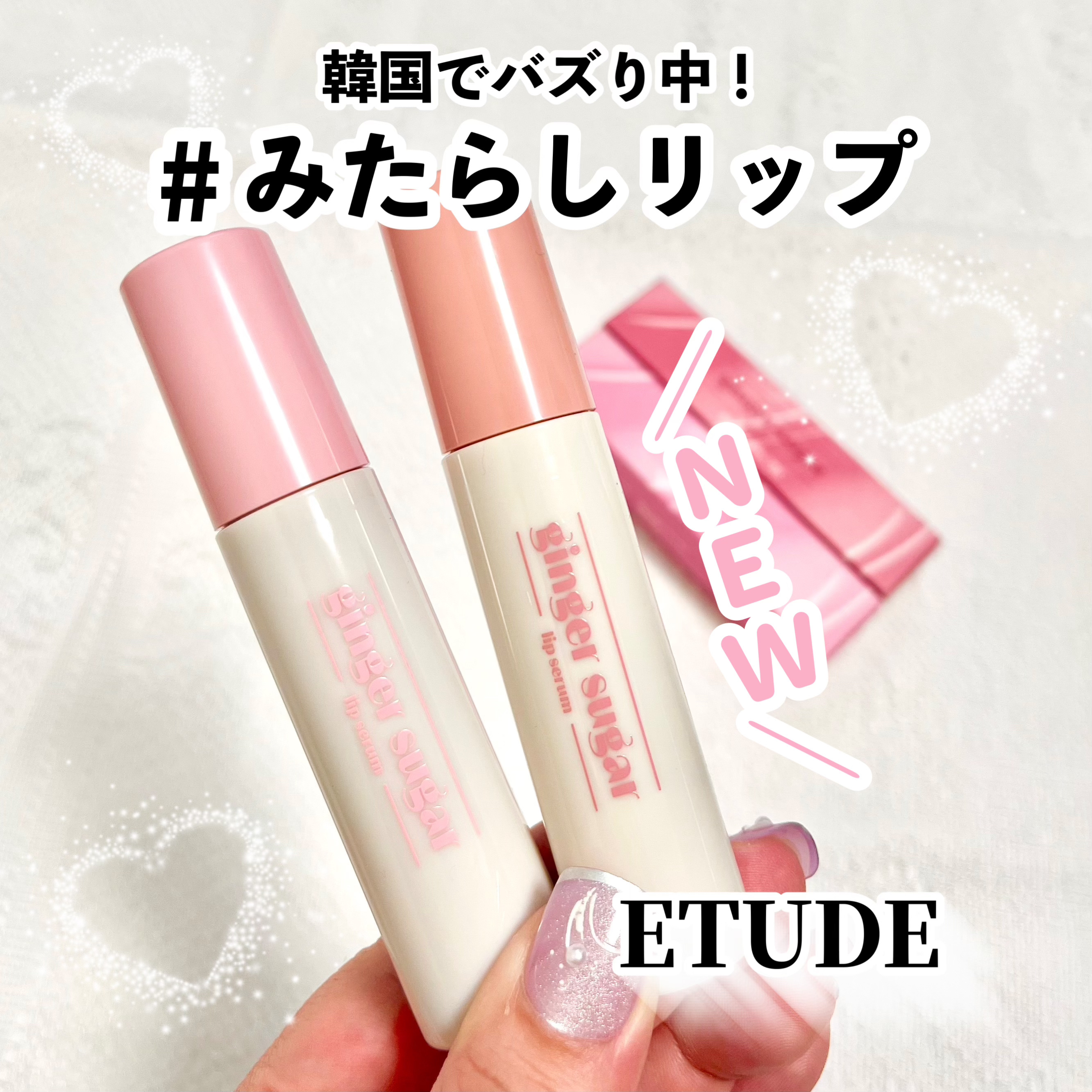 \韓国で大人気!みたらしリップ/ETUDEジンジャーシュガーカラーリップセラム01プラムジャム02モーブローズナチュラルな血色感を与えながらうるおいケアができる美容液リップ。にじむような血色感とぷるんと弾ける濃密ツヤが可愛すぎる🫶🏻たっぷり...