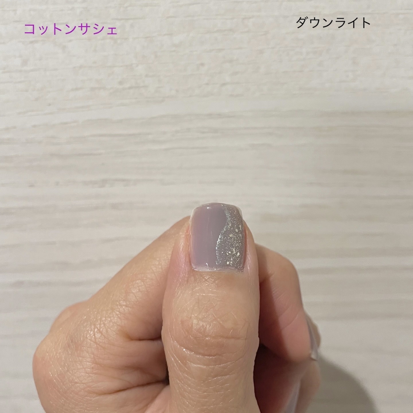 WAKEMAKEネイルガン 48DreamyMomentボトルだとラメ感強いのに自然光や室内灯だと控えめで上品なシアーパープルラメ😳💓ダウンライトや陽が当たるとより綺麗なラメが解る🥹💘(伝わりますかね‥🥺💦)7枚目(1番最後)の写真はLEDラ...