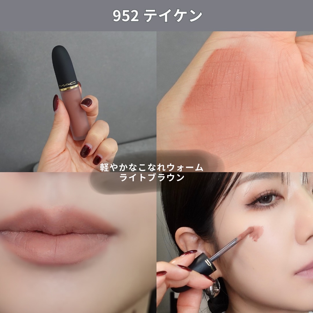 - NEW 新感覚パウダー キスが進化して登場。 “キスの余韻”のように軽く、ふわっと淡く色づく。 ラフにひと塗り、力の抜けた洒落感を叶える。 まるで”キスの余韻”だけを纏うような、そっと触れたように軽く、ふわっと淡い血色感を唇に。 バックステージで、リップとパウダーを重ねる幾つものステップで表現をした儚くてアンニュイなブラー質感。その仕上がりを、日常でも一本で叶えるために生まれたツヤでもない、マットでもないリップカテゴリーの概念を超えた革新的*なブラーリップ。 軽いだけじゃない。パウダリー質感なのに長時間潤い、色持ちも10時間続く**。 ミラーレスでラフにひと塗り、抜け感と洒落感を手に入れる。力を抜いたようなラフさが新しい洗練を叶える1本。 *M・A・C リップ製品の中で **データ取得済み(当社調べ。仕上がりには個人差があります。) ■ホイップムース質感からパウダリーに変わる新感覚テクスチャー 空気をはらんだようなホイップムースのようなテクスチャーが唇にふわりと溶け込み、軽やかなパウダリー質感へ変化。しっとり保湿しながら軽やかで心地の良い仕上がりへ。 ■ふわっと淡いブラー仕上がりで、ひと塗りで抜け感と洒落感を ふわっと淡くブラーな仕上がりだから、ミラーレスでラフにひと塗りするだけ。力を抜いたラフさが今っぽい洗練さを叶える。リップの輪郭をかすませ自然に立体感を引き出すブラー仕上げ。 ■長時間潤い、色もち10時間持続* ビタミンE**とパウダーをブレンドしたフォーミュラ。長時間潤いを逃さず、乾燥を防ぎ、縦ジワをカバー。色落ちせず、つけたての色・質感を10時間*キープ。時間が経っても美しい仕上がり。 ■チークにも使える、マルチユース リップからチークまでふわっと染めて、多幸感溢れるワントーンメイクも1本で叶える。 ■じゅわっと血色感をつくるソフトヌードカラー、全28色 じゅわっと血色感をつくり洗練オーラを放つM・A・Cならではのヌーディなニュアンスシェード展開。 ■唇に寄り添うようにフィットする砂時計型アプリケーター 縦ジワをなめらかに埋めるように塗り広げながら、輪郭をぼかしたようなソフトな仕上がりを叶える。 *データ取得済み(当社調べ。仕上がりには個人差があります。) **酢酸トコフェロール(保湿成分)