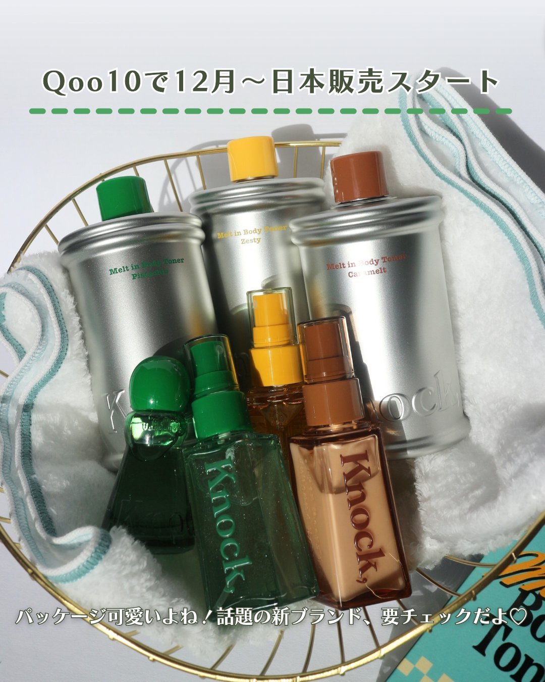 🤍Knock,🤍fwee・numbuzinから新しくローンチされた香りや使い心地など五感で楽しめるSensoryBeauty,brand︎💕︎︎💚ProductLineup💚📍メルトインボディトナー300㎖(3種)重たいボディローションに...