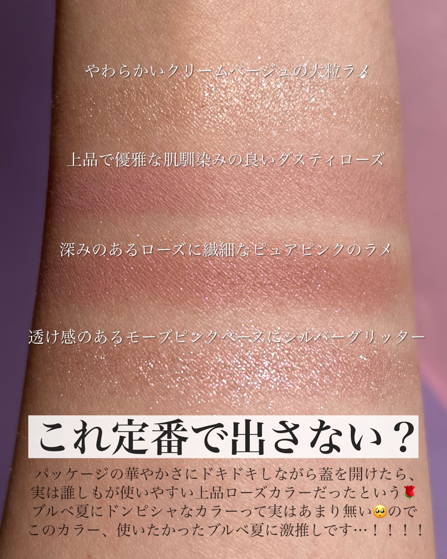 もーーーまずパッケージが可愛すぎるよね😢❤️❤️ 迷いなく全色買ってしまったよ…! 既存のジューシーラスティングティントに比べて ⚪︎サラッとしたリキッド ⚪︎やや薄づきな発色⚪︎艶々? 個人的にはロムアンドでは 最近こそ出るようになったけど ブルベ向きのカラー(特にサマー)でドンピシャが あんまり無いなあと思っていたので、 今回とっっても5〜8番が可愛くて ひじょーーーーーーに!満足しております💪❤️❤️