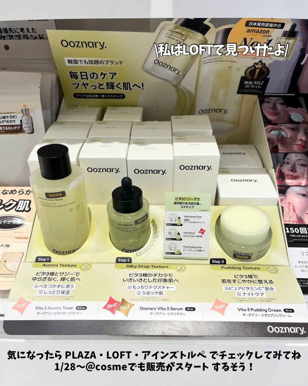 ♡Ooznaryビタ3セラム韓国のスキンケアブランドOoznaryのアイテムがロフトに置いてありました!日本で気軽に購入できるのが嬉しい!ロフトでは、特に気になっていたビタ3セラムも発見!こちらは、安定化された2種のビタミンC(3-0-エスア...