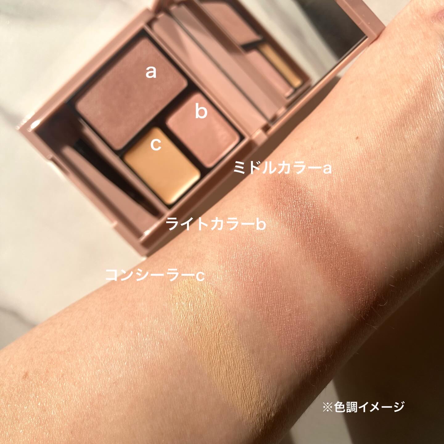 - ふわっとやわらかく色づく「パウダー」2色 ●質感・発色にこだわり抜いたアイブロウパウダー。 眉頭のぼかしもテクニックいらずで、誰でも簡単にふんわり質感の眉に仕上がります。 ●アイシャドウとしても使える bをまぶた全体に塗り広げ、次にaを目尻や下まぶたキワに重ねます。ソフトマットな質感で、自然なグラデーションが目もとに深みを与えます。 眉だけでなく、目もとにも使えて、統一感のあるワントーンメイクが叶います。 肌にぴたっと密着「コンシーラー」 ●密着力が高い肌なじみカラー 肌にぴたっと密着し、眉のふち取りがしやすく、皮膚が動きやすい目周りでもヨレにくい。 ●マルチに使える! 眉周り以外にも、涙袋の強調、目の下のクマ、肌のシミ・赤みのカバー等にもおすすめ。