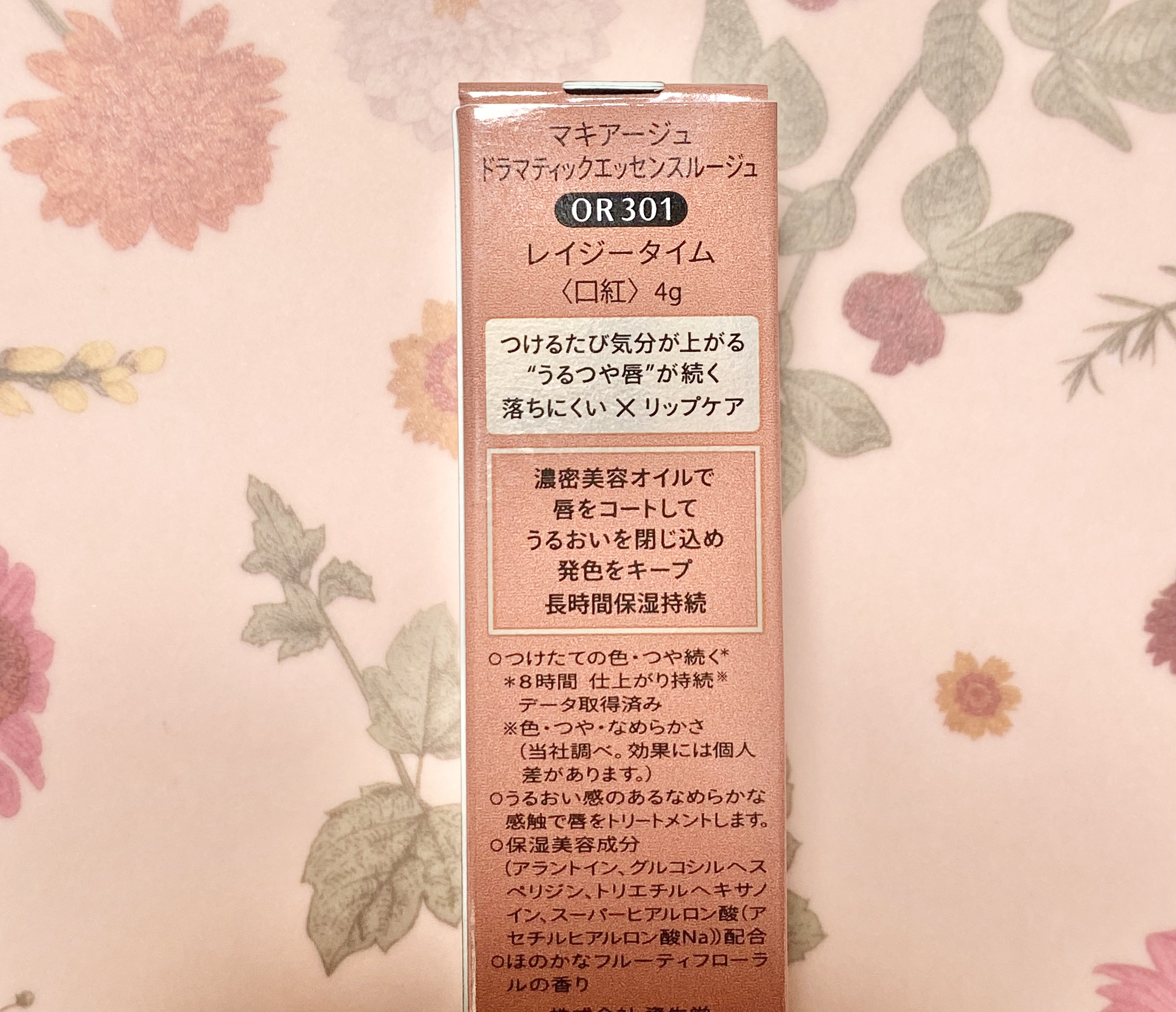 - つけるたびうるおってなめらかな“うるつや唇”が続く。 ○落ちにくい×リップケア 保湿美容成分配合 ―アラントイン、グルコシルヘスペリジン、トリエチルヘキサノイン、スーパーヒアルロン酸(アセチルヒアルロン酸 Na) ○色もち&心地よさを叶えるウォーターセンシングテクノロジー™搭載 ○塗り方次第で印象を変える「コントロール発色処方」採用 〇ほのかなフルーティフローラルの香り