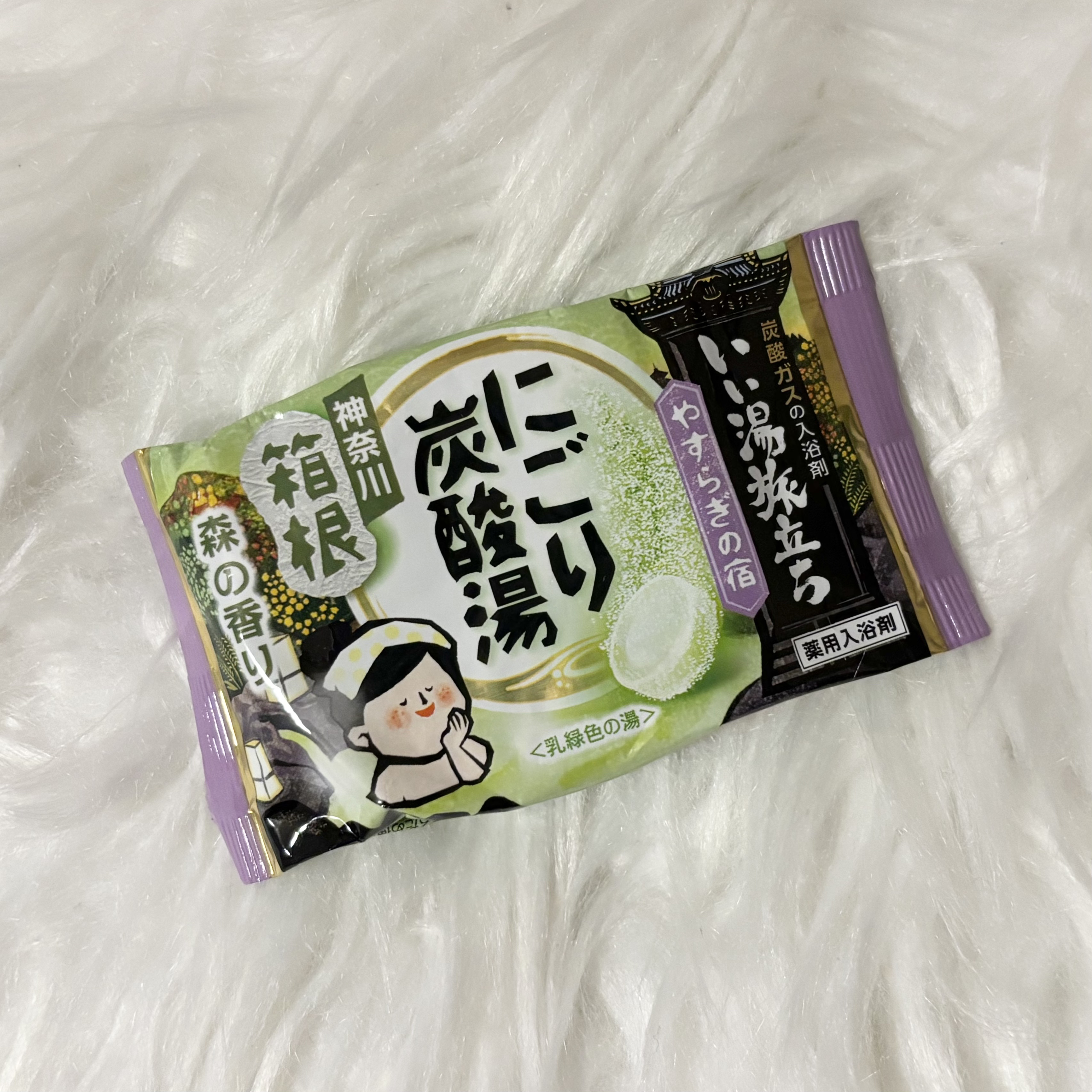 炭酸ガスが温浴効果を高め血行を促進して冷え症や肩こり・腰痛に効果があり 一日の疲れをやわらげます 外箱も大正浪漫は洋館や椿やはいからさん的な袴姿の女学生が背景にあるという徹底ぶり! 私のイチオシは藤ロマンの香り!甘い華やかな藤の香りが広がります〜🪻