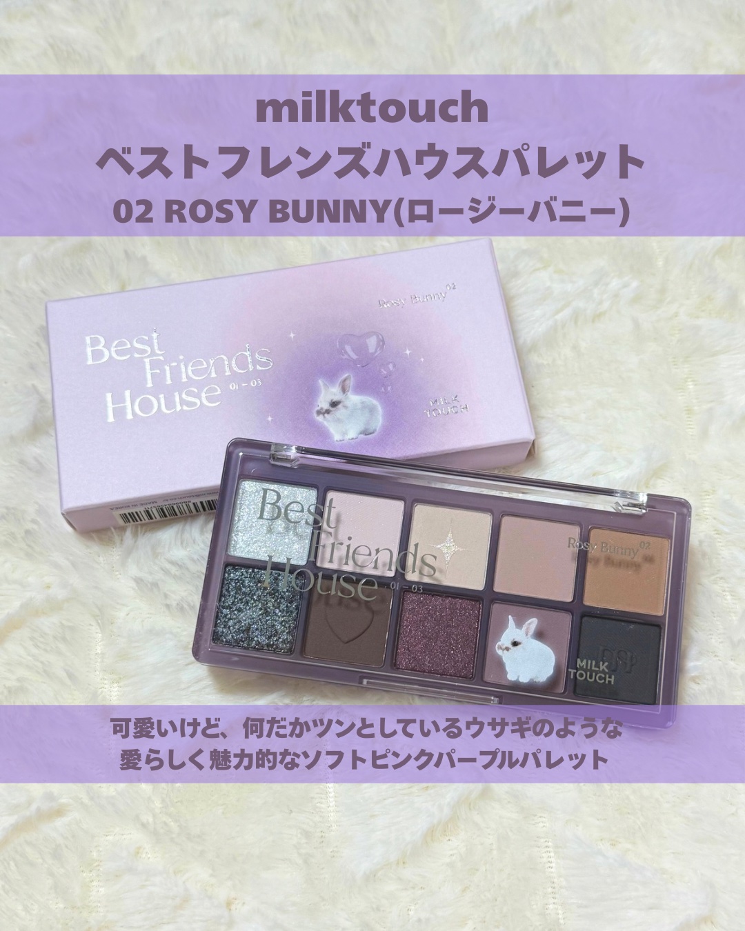 #gifted@milktouch_jp#むーんぱわーさろんのプレキャンで#milktouchのアイシャドウパレット🎨をいただきました💓ビーマイベストフレンズハウスパレット02RosyBunny🐰ブルベ冬っぽい色🩷ブルベ夏っぽいパレットも先日...