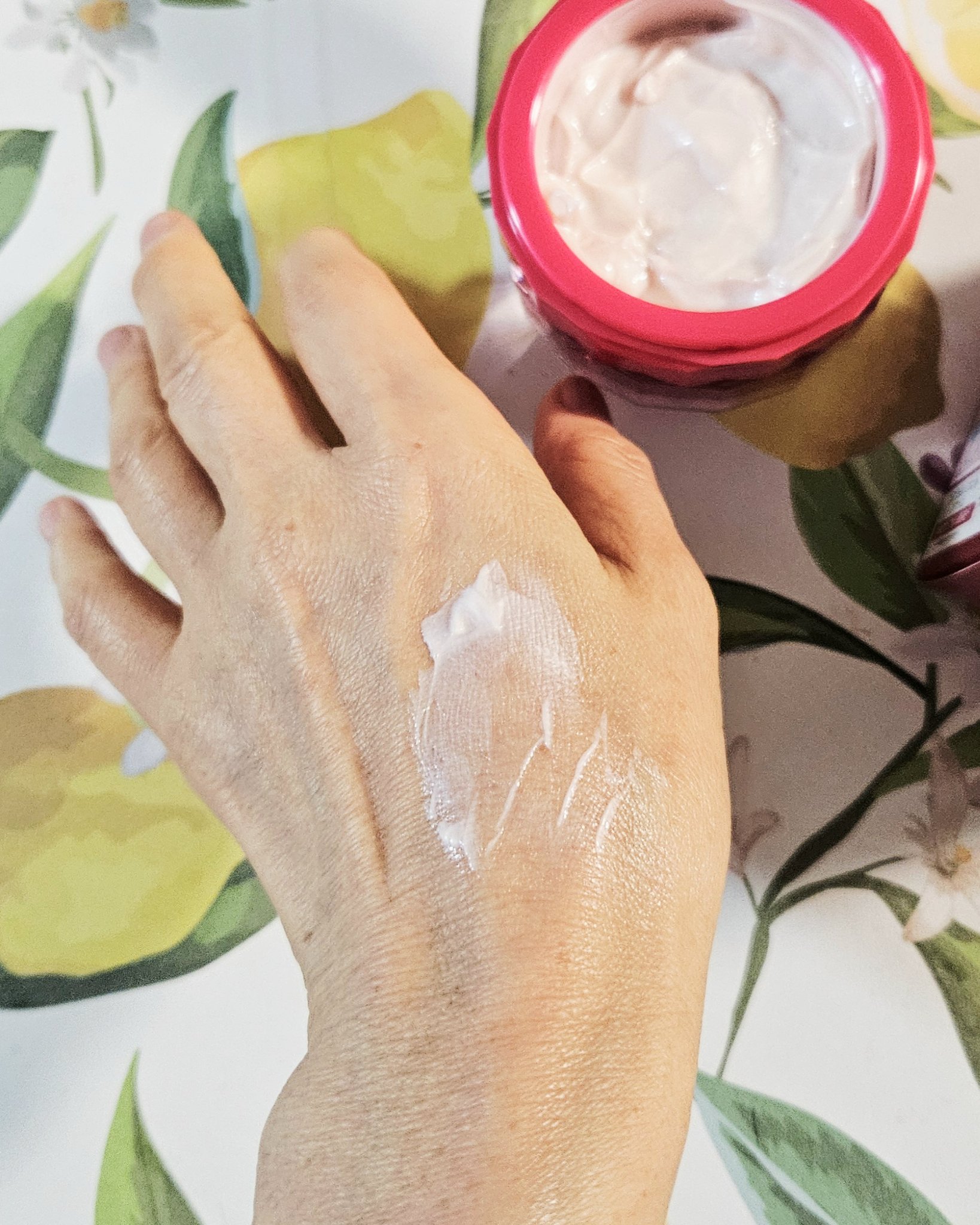 ミストタイプなので顔全体にいきわたってしかも気持ちいいです。 なじませた後のべたつきもなくて、次のステップもす~~と入っていく感じ。 このピンクには、さっぱりと肌を落ち着かせて保湿ケアするオイル層のレッドフラワーオイルと肌に活気を与えてくれる栄養セラム層のトコフェロール、ヤマザクラ花エキスが含まれているとのこと。