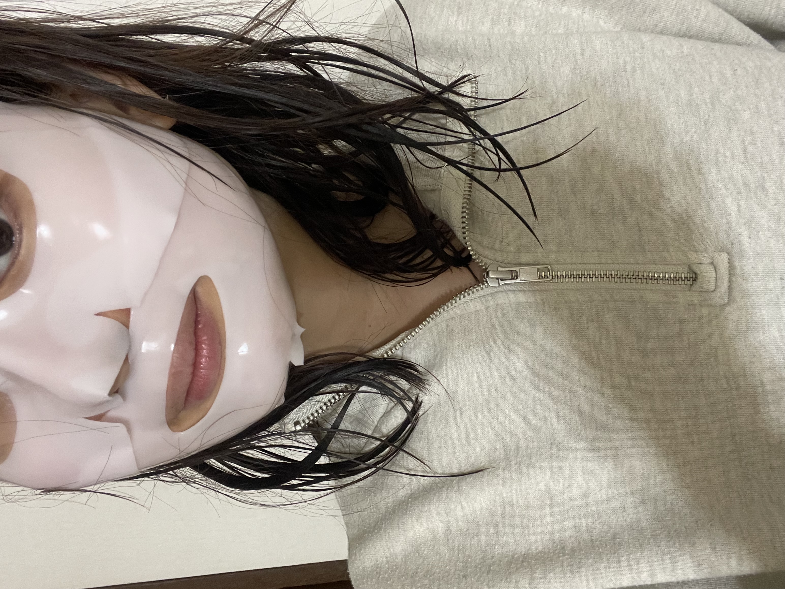 プルプルで美容成分たっぷりなマスク!!上下に分かれてるのが顔にフィットしやすい!3時間後、肌の透明感爆上がり!デート前に重宝^_^一枚でケアできるのがズボラの私にもぴったり!柔らかくてプルプルなので少し動かそうと思ったら破れやすいので注意かな...