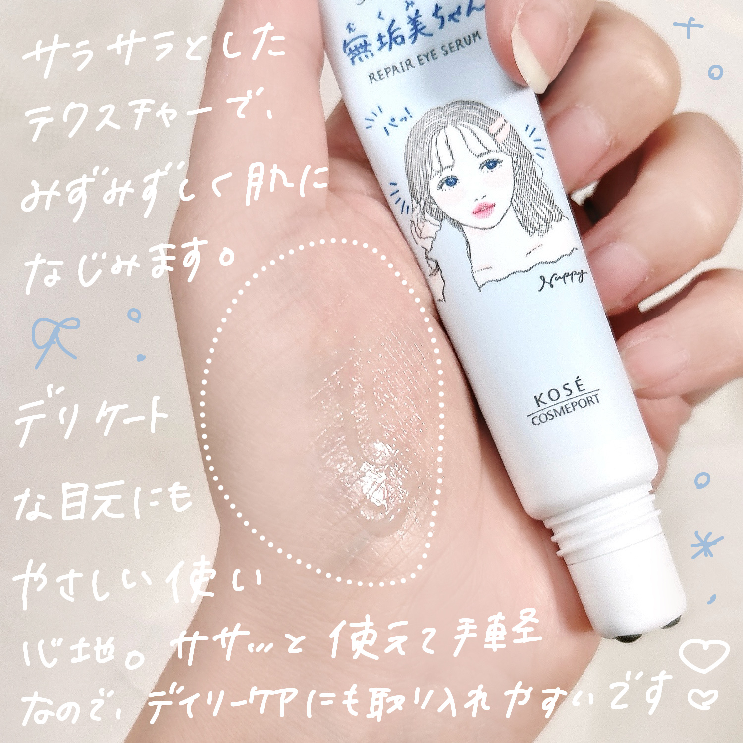 LemonSquareを通じてコーセーコスメポートからごめんね素肌無垢美ちゃんアイセラムを提供してもらいました。最近、目元が気になる。乾燥も気になる。気になりすぎて困ってる。★ロールオンタイプで目もとにしっかり塗布できるひきしめ・乾燥によるく...