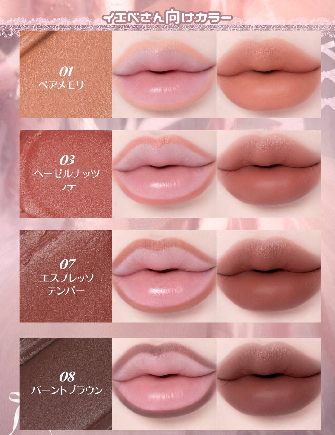 | 口紅・グロス・リップライナーランキング第166位 | 密着力が高くてよれづらいのでマスクをつけても マスクにリップは転写しづらく感じました! | 詳細を見る | |