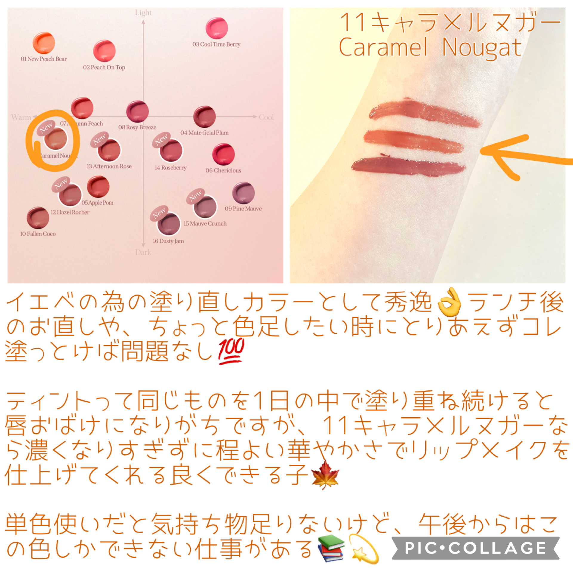 - <01 ニューピーチベア(New peach bear)> 水、リンゴ酸ジイソステアリル、ダイマージリノール酸ダイマージリノレイル、デカイソステアリン酸ポリグリセリル-10、ダイマージリノール酸ダイマージリノレイルビス(ベヘニル/イソステアリル/フィトステリル)、BG、ポリソルベート60、グリセリン、セテアレス-20、テトライソステアリン酸ペンタエリスリチル、(PEG-240/デシルテトラデセス-20/HDI)コポリマー、フェノキシエタノール、メントキシプロパンジオール、(アクリル酸ヒドロキシエチル/アクリロイルジメチルタウリンNa)コポリマー、(PPG-17/IPDI/DMPA)コポリマー、トリイソステアリン酸ポリグリセリル-2、スクワラン、カプリリルグリコール、酸化チタン、1,2-ヘキサンジオール、香料、黄5、エチルヘキシルグリセリン、プロパンジオール、赤104(1)、黄4、赤227、イソステアリン酸ソルビタン、ダイウイキョウ果実エキス、水酸化Al、ヘキシレングリコール、青1、ラウリン酸K、トコフェロール、モモ果実エキス、リンゴ果実エキス、スモモ果実エキス、イチゴ果汁 <02 ピーチオントップ(Peach On Top)> 水、リンゴ酸ジイソステアリル、ダイマージリノール酸ダイマージリノレイル、デカイソステアリン酸ポリグリセリル-10、ダイマージリノール酸ダイマージリノレイルビス(ベヘニル/イソステアリル/フィトステリル)、BG、ポリソルベート60、グリセリン、テトライソステアリン酸ペンタエリスリチル、セテアレス-20、(PEG-240/デシルテトラデセス-20/HDI)コポリマー、フェノキシエタノール、メントキシプロパンジオール、(アクリル酸ヒドロキシエチル/アクリロイルジメチルタウリンNa)コポリマー、(PPG-17/IPDI/DMPA)コポリマー、スクワラン、カプリリルグリコール、酸化チタン、トリイソステアリン酸ポリグリセリル-2、1,2-ヘキサンジオール、エチルヘキシルグリセリン、香料、プロパンジオール、赤104(1)、黄4、赤227、イソステアリン酸ソルビタン、ダイウイキョウ果実エキス、水酸化Al、ヘキシレングリコール、ラウリン酸K、トコフェロール、青1、モモ果実エキス、リンゴ果実エキス、スモモ果実エキス、イチゴ果汁 <03 クールタイムベリー(Cool Time Berry)> 水、リンゴ酸ジイソステアリル、ダイマージリノール酸ダイマージリノレイル、デカイソステアリン酸ポリグリセリル-10、ダイマージリノール酸ダイマージリノレイルビス(ベヘニル/イソステアリル/フィトステリル)、BG、ポリソルベート60、グリセリン、セテアレス-20、テトライソステアリン酸ペンタエリスリチル、(PEG-240/デシルテトラデセス-20/HDI)コポリマー、フェノキシエタノール、メントキシプロパンジオール、(アクリル酸ヒドロキシエチル/アクリロイルジメチルタウリンNa)コポリマー、(PPG-17/IPDI/DMPA)コポリマー、スクワラン、酸化チタン、カプリリルグリコール、トリイソステアリン酸ポリグリセリル-2、1,2-ヘキサンジオール、香料、エチルヘキシルグリセリン、プロパンジオール、赤104(1)、赤227、黄4、ダイウイキョウ果実エキス、イソステアリン酸ソルビタン、黄5、水酸化Al、ヘキシレングリコール、トコフェロール、ラウリン酸K、モモ果実エキス、リンゴ果実エキス、スモモ果実エキス、イチゴ果汁 <04 ミュートフィシャルプラム(Mute-Ficial Plum)> 水、リンゴ酸ジイソステアリル、デカイソステアリン酸ポリグリセリル-10、ダイマージリノール酸ダイマージリノレイル、ダイマージリノール酸ダイマージリノレイルビス(ベヘニル/イソステアリル/フィトステリル)、BG、ポリソルベート60、グリセリン、テトライソステアリン酸ペンタエリスリチル、セテアレス-20、(PEG-240/デシルテトラデセス-20/HDI)コポリマー、フェノキシエタノール、メントキシプロパンジオール、(アクリル酸ヒドロキシエチル/アクリロイルジメチルタウリンNa)コポリマー、(PPG-17/IPDI/DMPA)コポリマー、スクワラン、酸化チタン、カプリリルグリコール、トリイソステアリン酸ポリグリセリル-2、1,2-ヘキサンジオール、香料、エチルヘキシルグリセリン、プロパンジオール、黄5、赤227、黄4、酸化鉄、イソステアリン酸ソルビタン、ダイウイキョウ果実エキス、水酸化Al、青1、ヘキシレングリコール、ラウリン酸K、トコフェロール、モモ果実エキス、リンゴ果実エキス、スモモ果実エキス、イチゴ果汁 <05 アップルポム(Apple Pom)> 水、リンゴ酸ジイソステアリル、デカイソステアリン酸ポリグリセリル-10、ダイマージリノール酸ダイマージリノレイル、ダイマージリノール酸ダイマージリノレイルビス(ベヘニル/イソステアリル/フィトステリル)、BG、ポリソルベート60、グリセリン、テトライソステアリン酸ペンタエリスリチル、セテアレス-20、(PEG-240/デシルテトラデセス-20/HDI)コポリマー、トリイソステアリン酸ポリグリセリル-2、フェノキシエタノール、メントキシプロパンジオール、酸化鉄、(アクリル酸ヒドロキシエチル/アクリロイルジメチルタウリンNa)コポリマー、(PPG-17/IPDI/DMPA)コポリマー、スクワラン、酸化チタン、カプリ