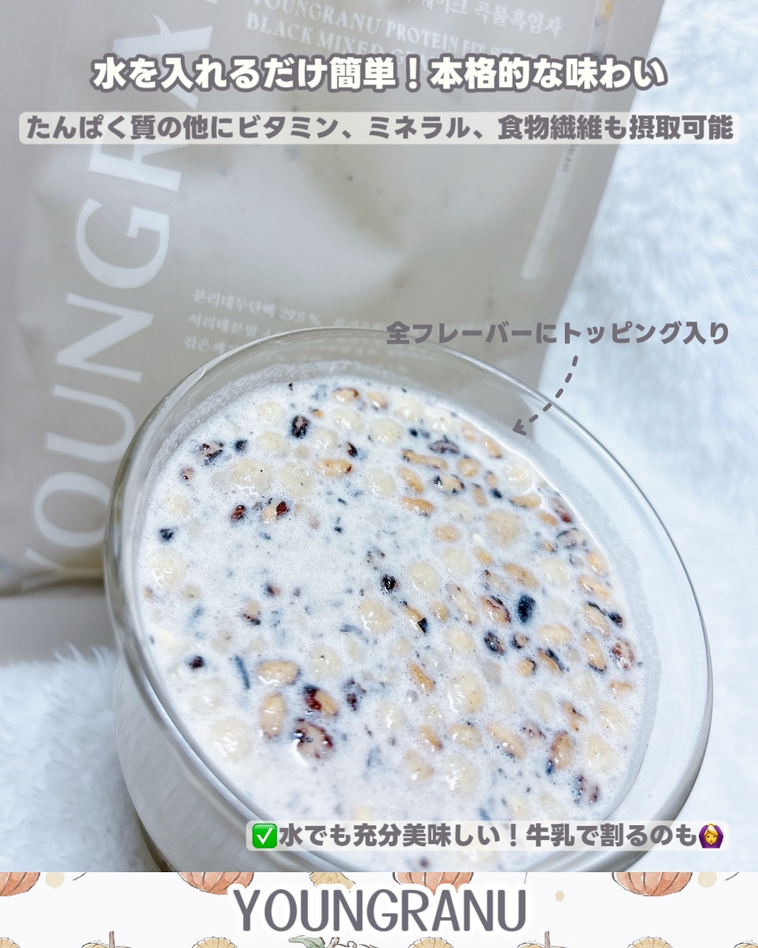 ESTHERFORMULAYOUNGRANU(ヨンラニュー)🤎*・\美味しい🩷プロテインシェイク/ヨンラニュープロテインフィットシェイク全6種穀物黒ごま,スイートコーン,ココアピスタチオ,よもぎラテ,あずきピンス▼ご提供@youngranu_...