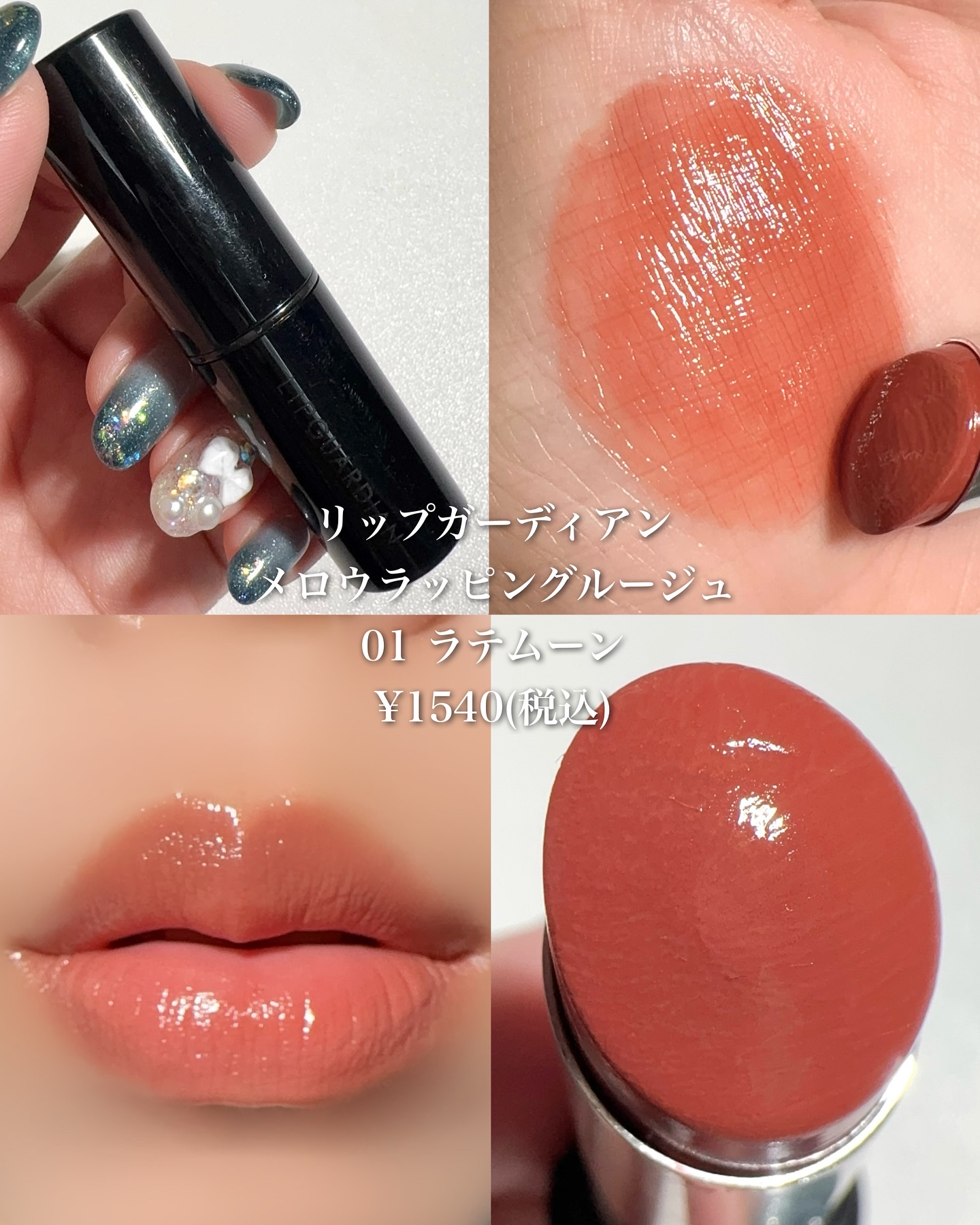 ねっちょりボリューム感あるテクスチャーだけど、ベタつきなく使いやすい。 ティントじゃない普通のグロスだから色もちは良くない。 発色ナチュラルだからこれだけでもいいけど、他のリップと合わせても可愛い!!